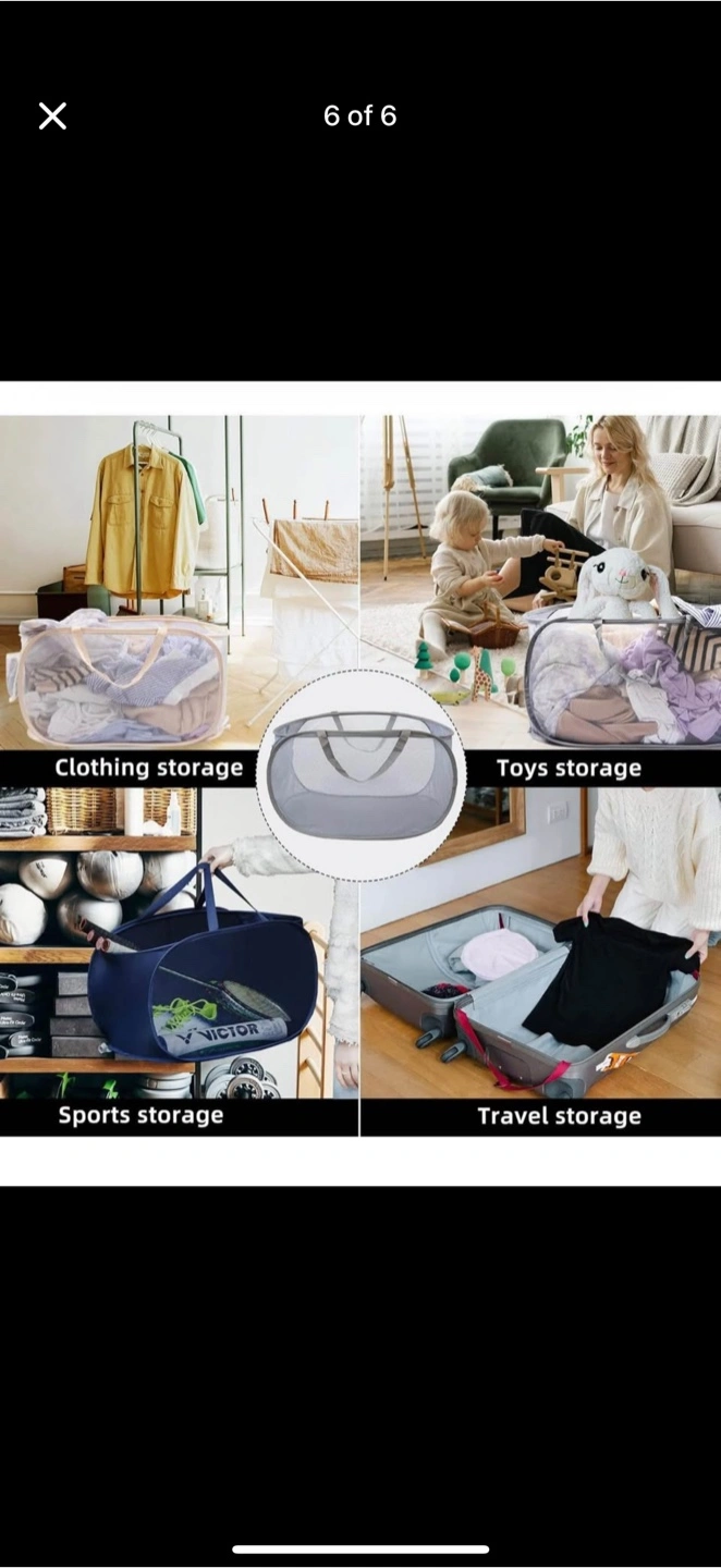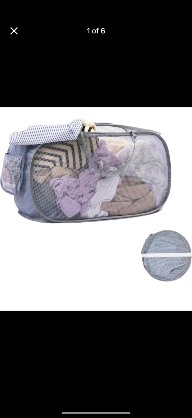 This pop-up laundry basket is super handy! It's made with breathable mesh for excellent air permeability, making it quick-drying, anti-odor, and anti-bacterial. It also features reinforced handles for easy carrying, whether by hand or on your shoulder. Plus, it has a side pocket for storing small objects. The nylon mesh and iron wire construction make it sturdy and durable for stable support