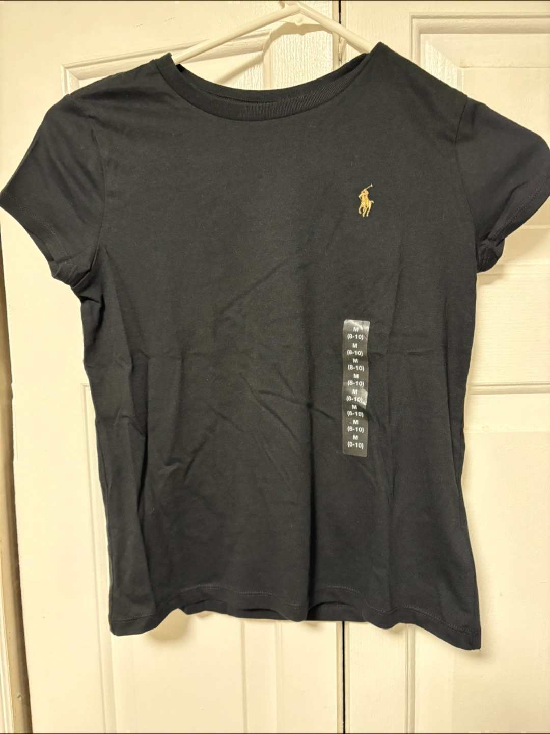 Selling a Ralph Lauren black t-shirt in size M (8-10). It's in great condition and ready for a new home! The classic design and comfortable fit make it a versatile addition to any wardrobe