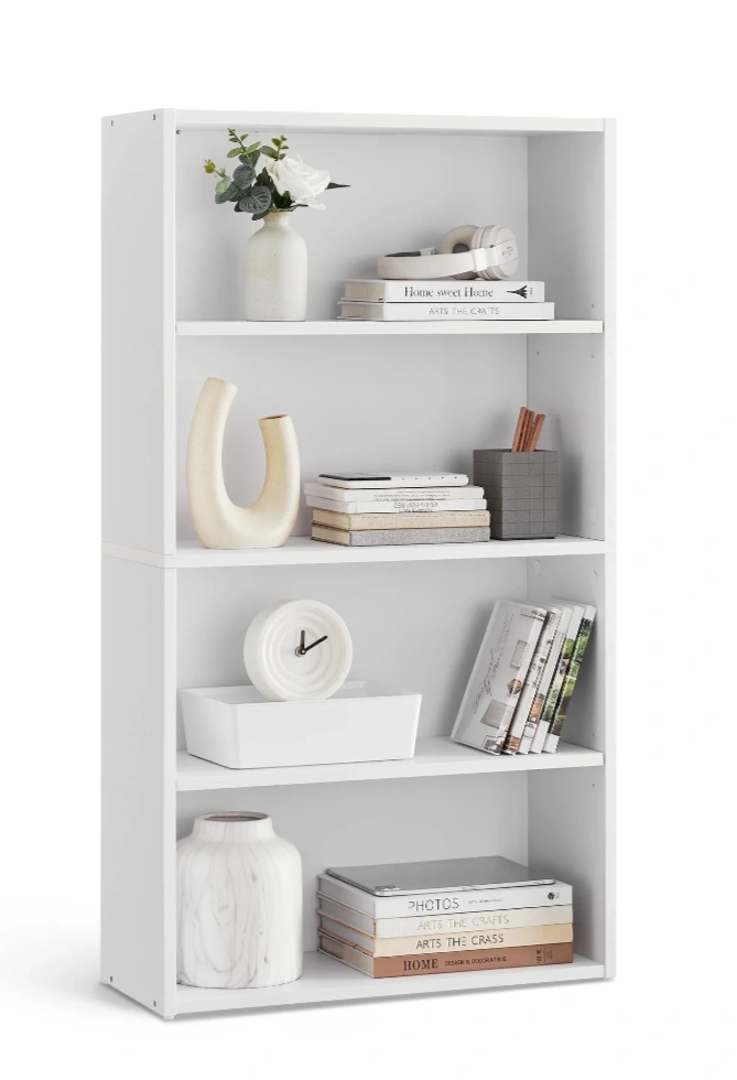 I'm selling a white bookcase in great condition! It has four shelves, perfect for storing books, decorations, or other items. It's a simple and clean design that would fit well in any room