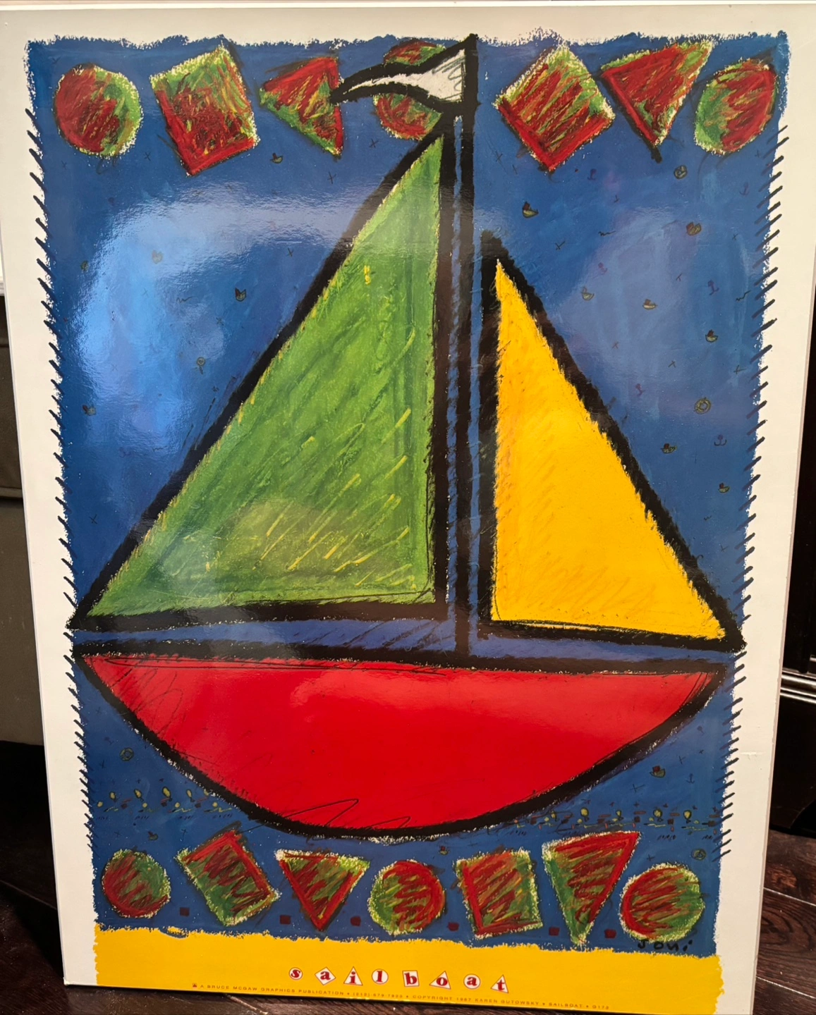 2 Vintage Karen Gutowsky Train & Sailboat Children’s Prints 1994