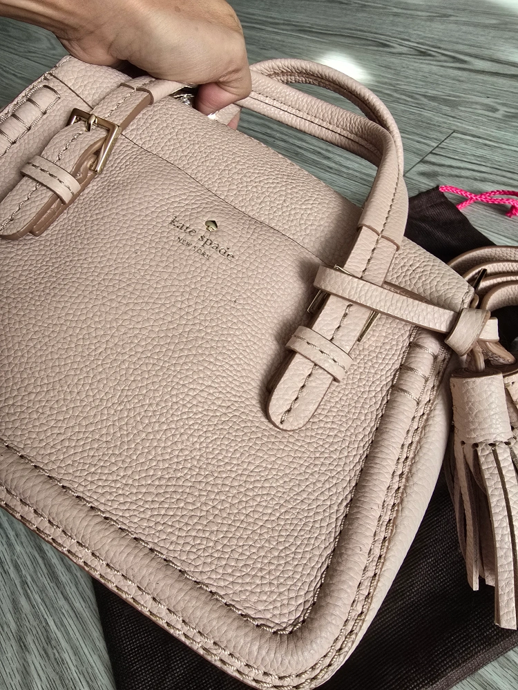 This is a cute Kate Spade satchel in a lovely pink leather. It's in great condition and comes with its original dust bag!