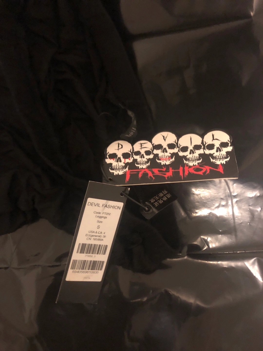 Selling a pair of Devil Fashion leggings in black. They're a size small and feature a unique design. Perfect for adding a bit of edge to your wardrobe!