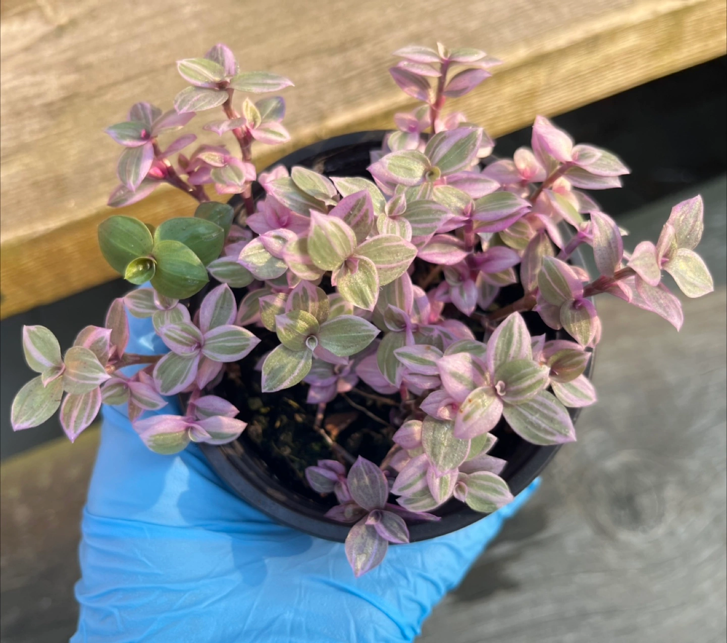 A lovely pink lady plant in a 4”pot, ready to brighten up your space! The leaves have a beautiful mix of green, pink, and purple hues. It's looking for a new home!