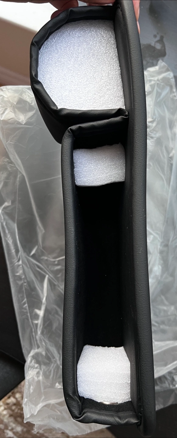 Keep your car tidy with this car seat gap organizer! It's black, synthetic leather, high quality and measures approximately 30cm x 20cm. Perfect for holding drinks, phones, iPad and other small items.