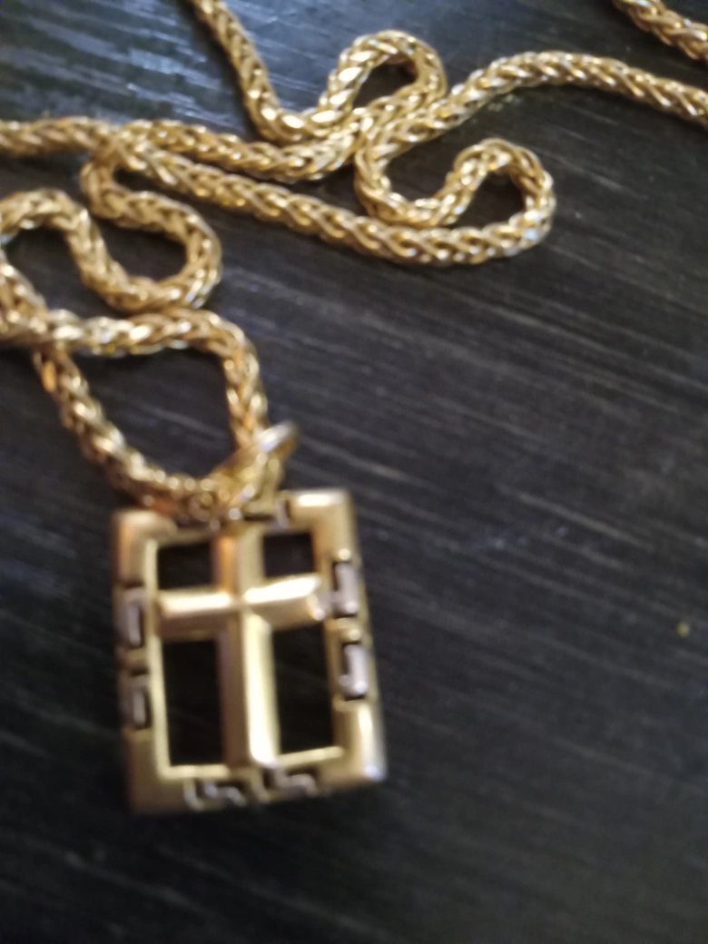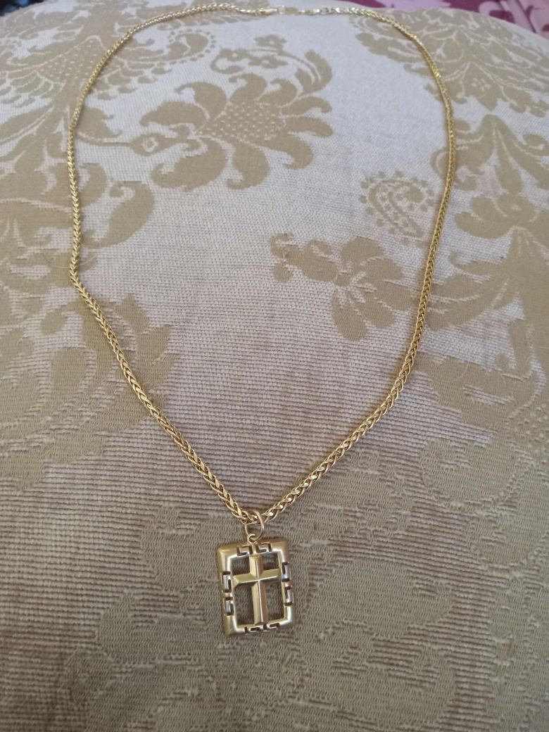 Selling a gold-tone necklace22k with a unique cross pendant. It's in great condition and ready for a new home!22k