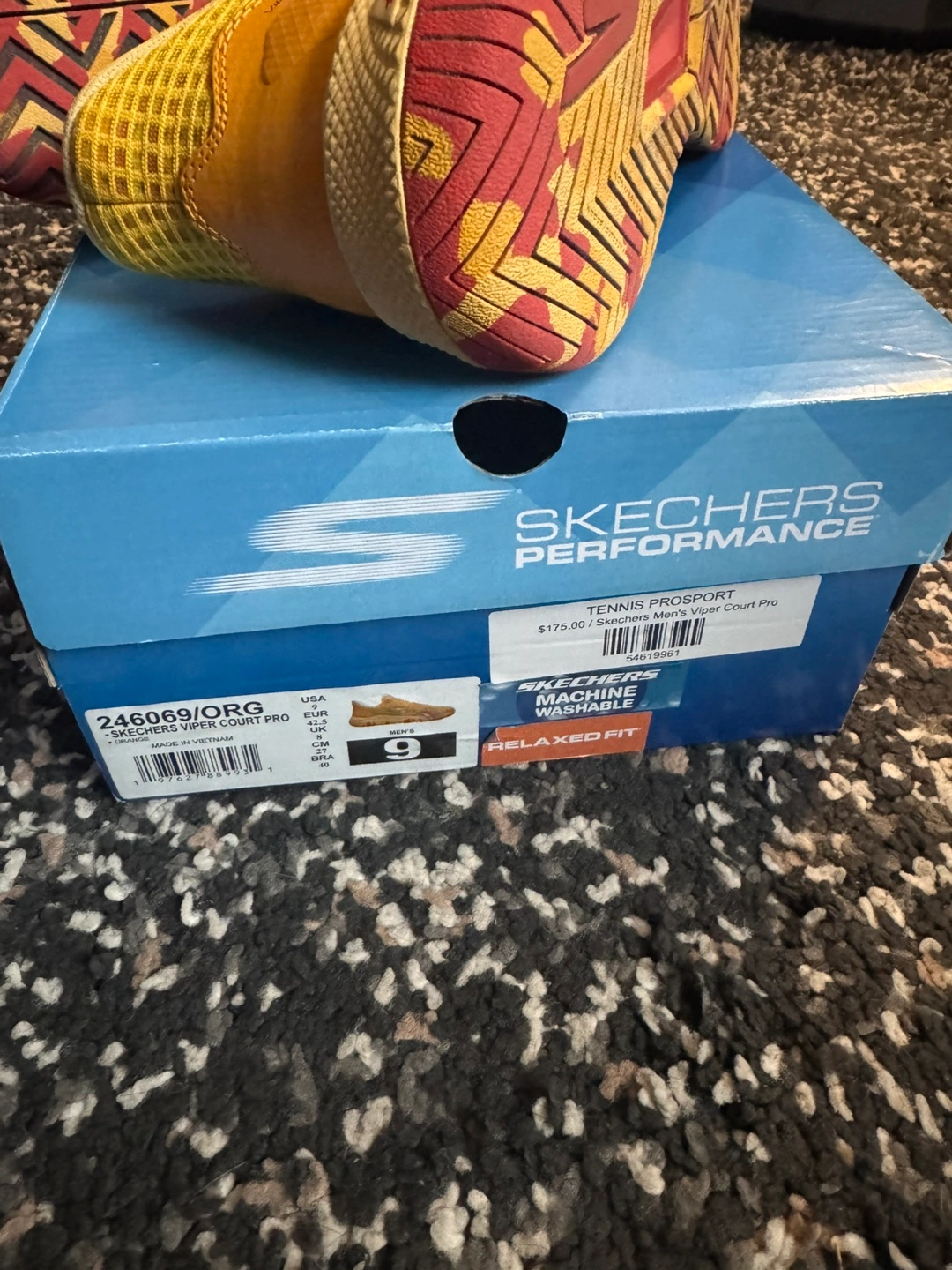Selling a pair of Skechers Viper Court Pro tennis shoes in size 9. These have the Arch Fit for extra comfort! They come with the original box. Originally bought for $175 at Tennis Prosport.