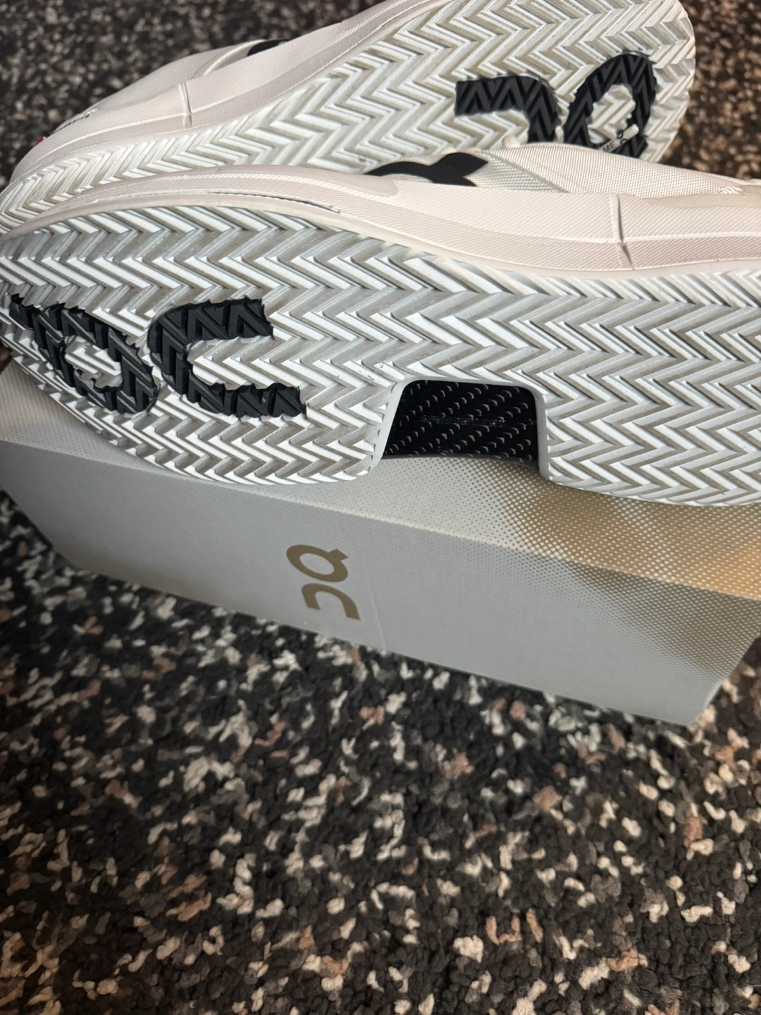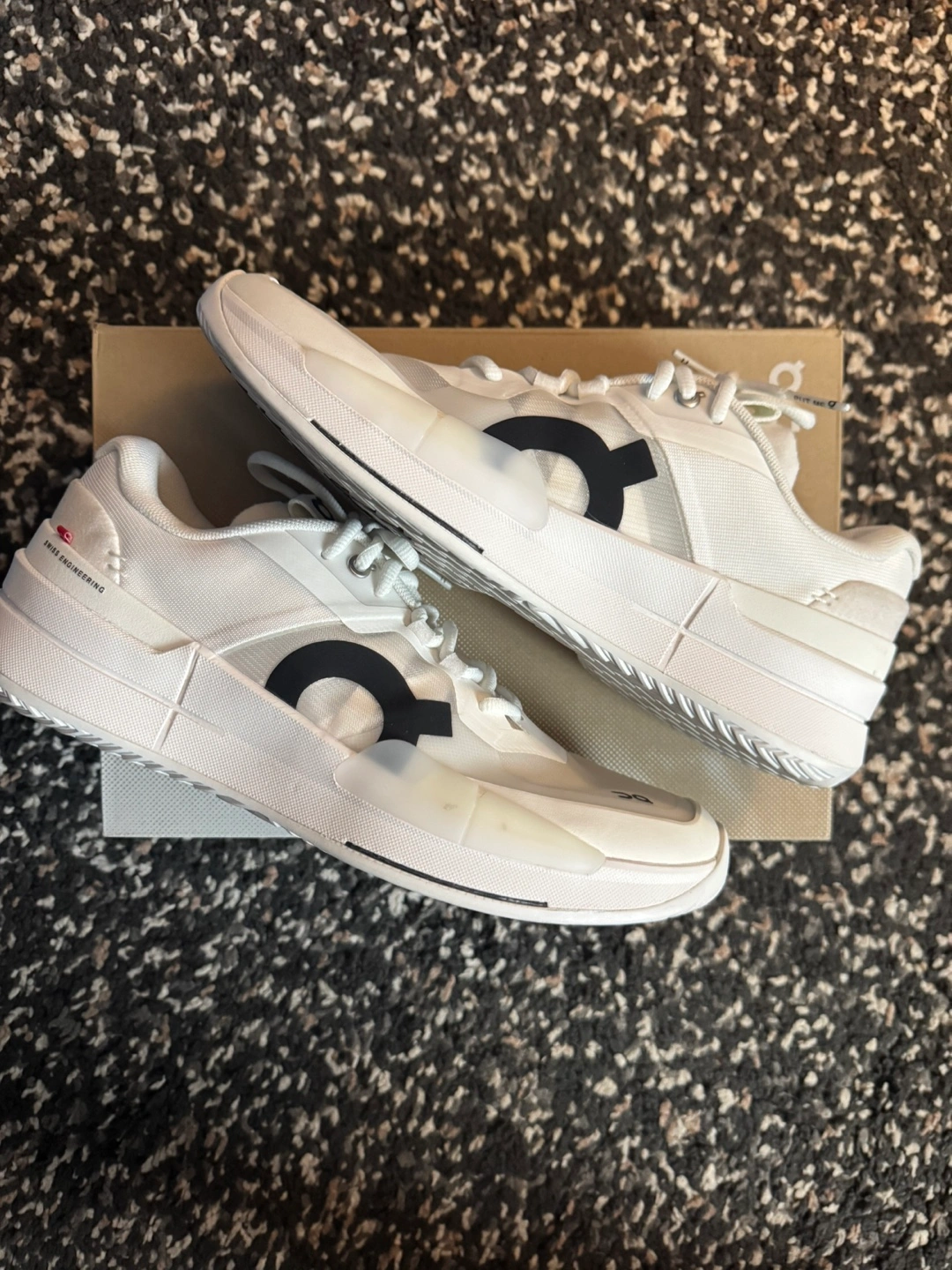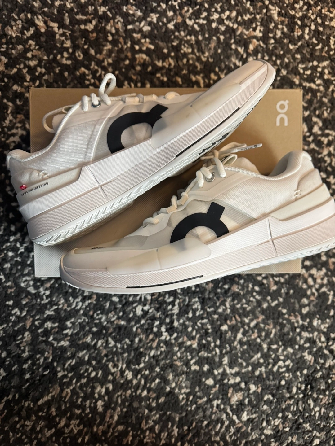 Selling a pair of On The Roger Pro 2 tennis shoes in white! They're in great shape and comes woth replacement box. These shoes are designed with Swiss engineering for top performance on the court.