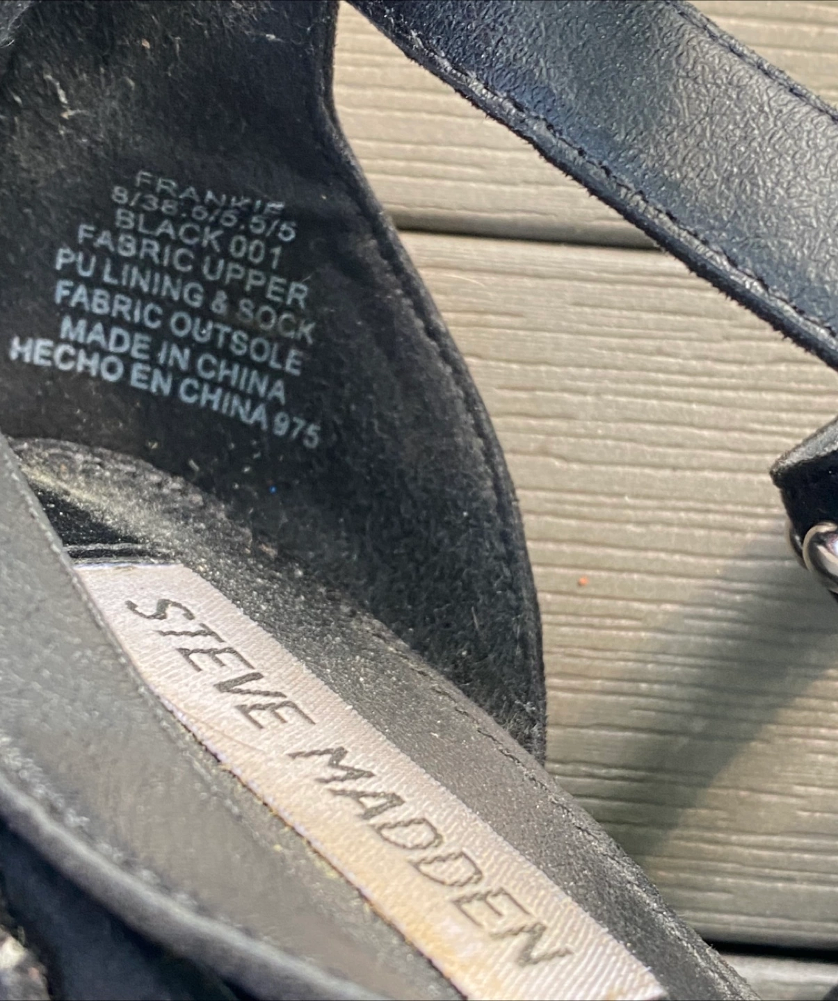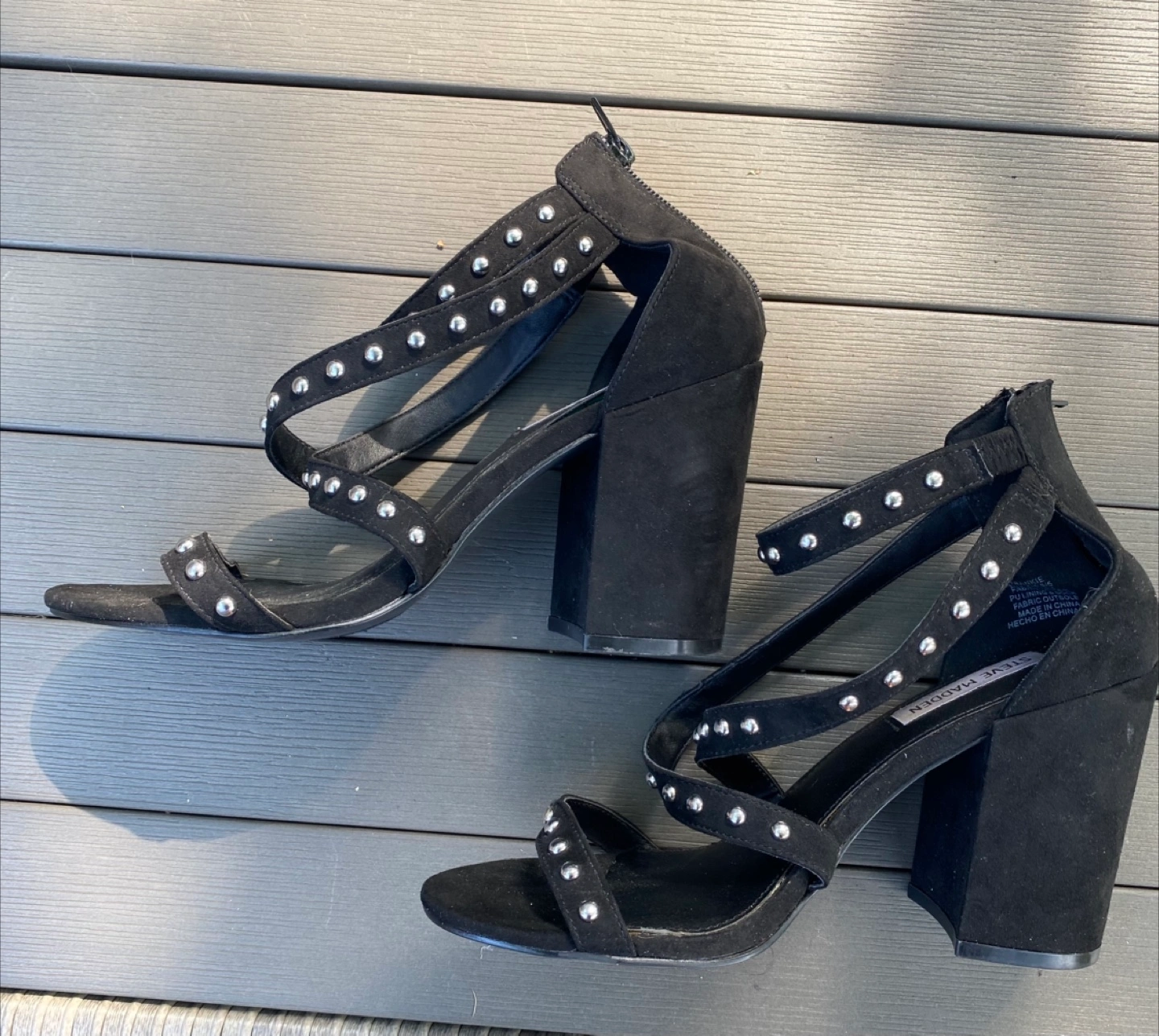 Cute Steve Madden black heels with studded straps! They have a zipper closure in the back and are in great condition. Size 8.