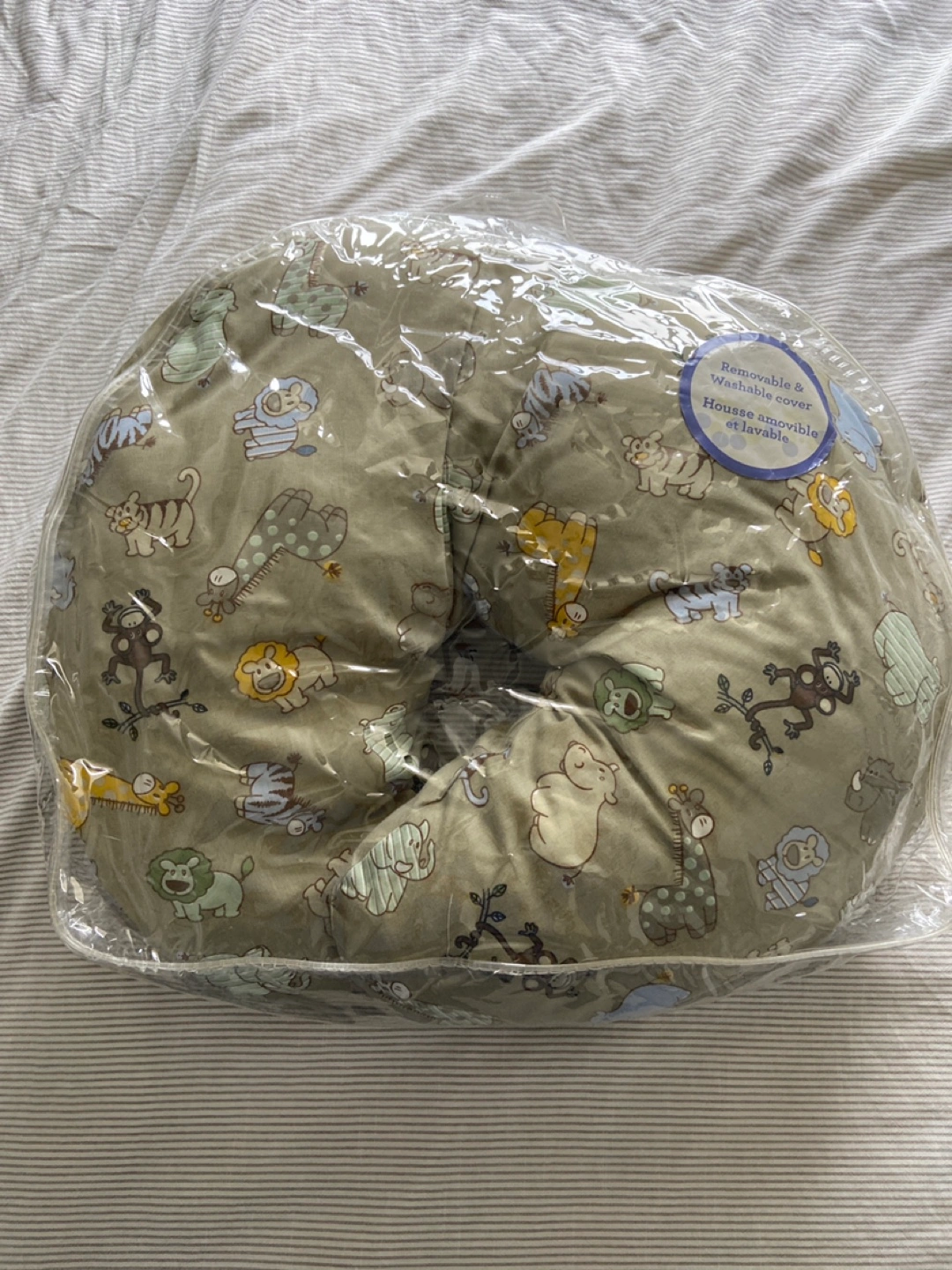 Selling a Boppy pillow with a cute animal print! It's still in its original packaging and looks brand new. The cover is removable and washable, making it super convenient for everyday use. Perfect for supporting your little one during feeding or tummy time