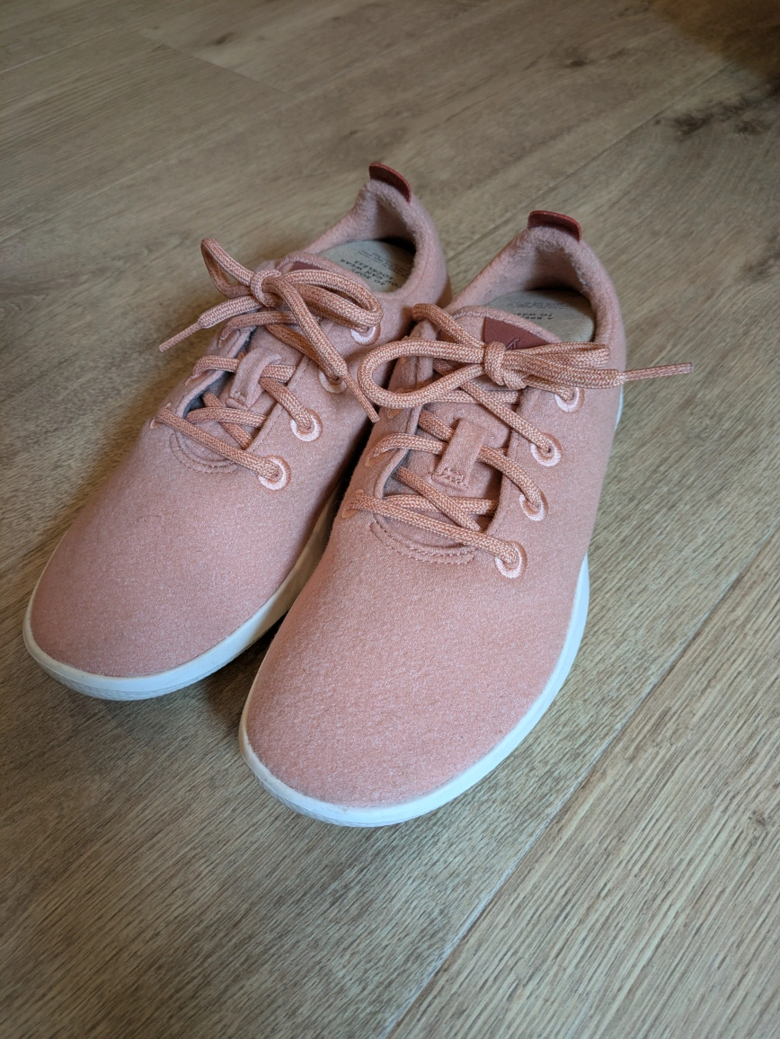 Selling a pair of Allbirds Wool Runners in Malibu, a limited-edition lovely pinky-peach colour. These are super comfy and lightweight, perfect for everyday wear. They're in great condition (only worn a few times) and are a ladies' size 8.