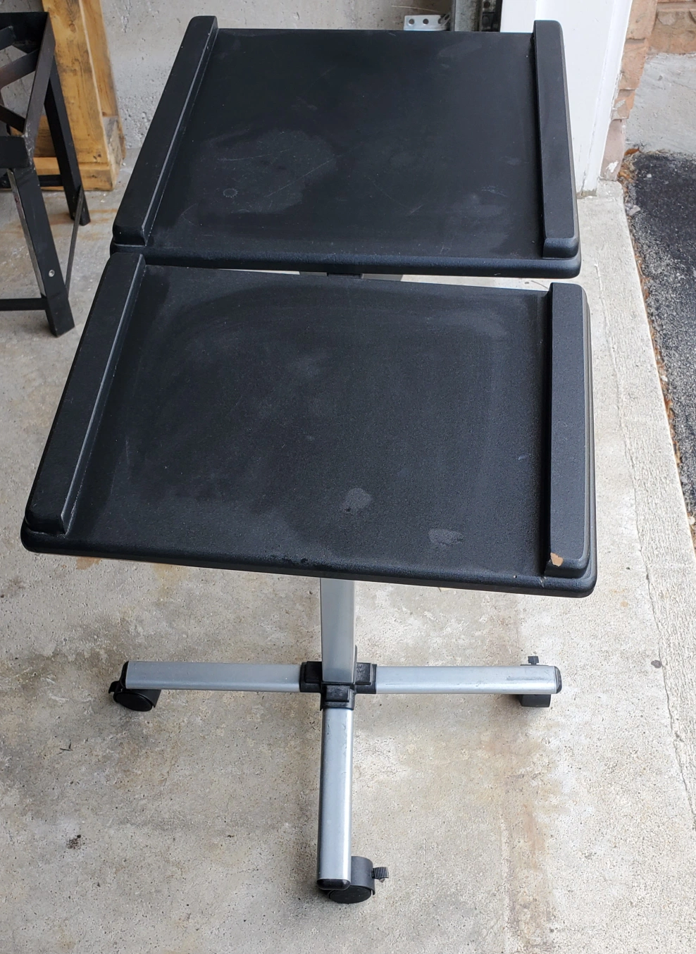 Selling an adjustable rolling laptop desk! It features a sturdy base with smooth-rolling wheels, making it easy to move around your space. The height is adjustable to suit your needs, whether you're working on the couch or at a desk. Perfect for creating a flexible workspace in your home or office