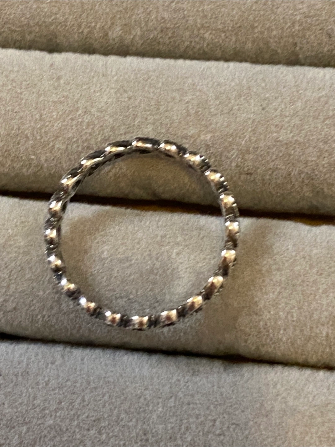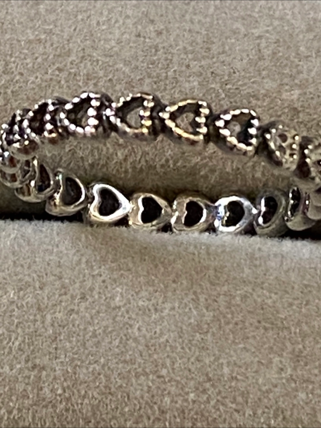 Selling a Pandora heart ring. It's stamped with P2 ALE 925, (54)sterling silver. The ring features an open heart design around the band and wear alone or stackable.