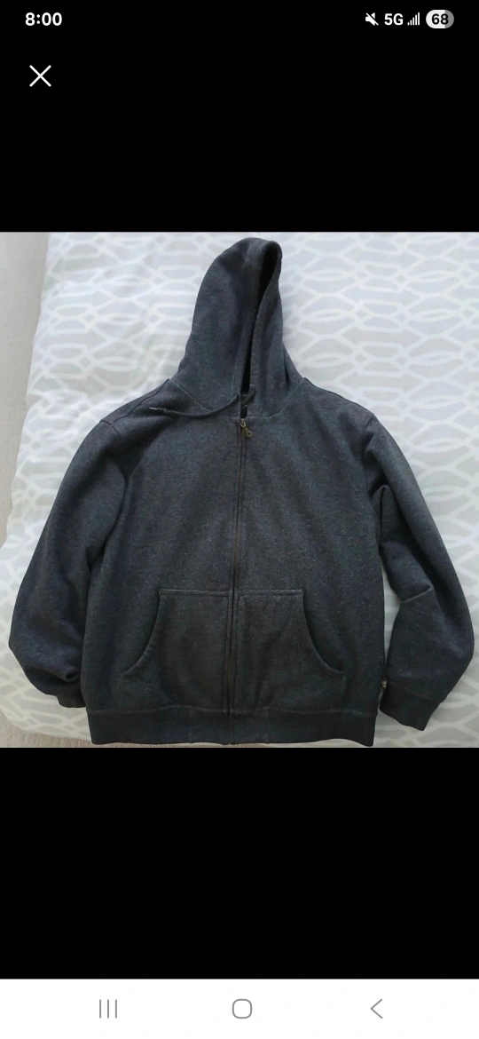 A comfy grey zip-up hoodie, perfect for layering or just lounging around the house! It's in great condition and ready for a new home!