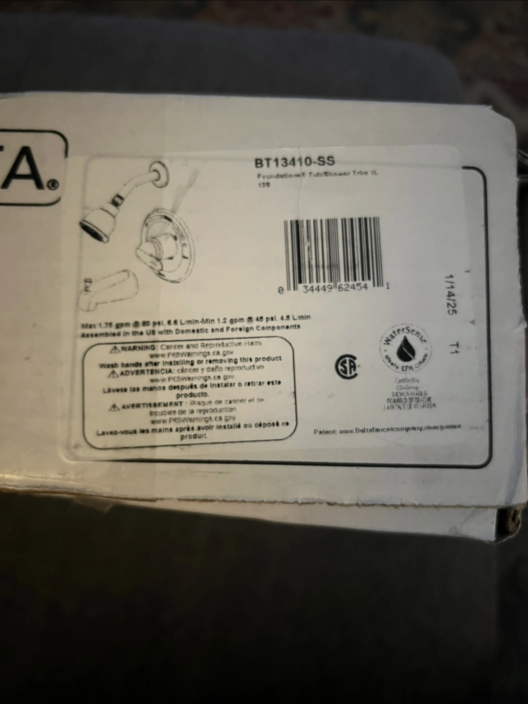 I'm selling a brand new Delta Foundations 1-Spray Single Handle Tub and Shower Faucet Trim Kit in Stainless, model BT13410-SS. It's still in the original box and packaging!. The actual color is stainless.