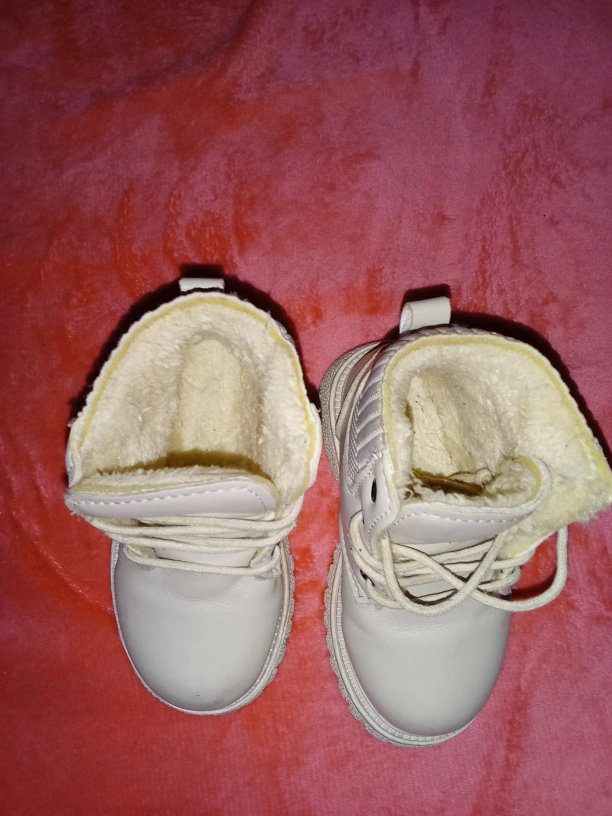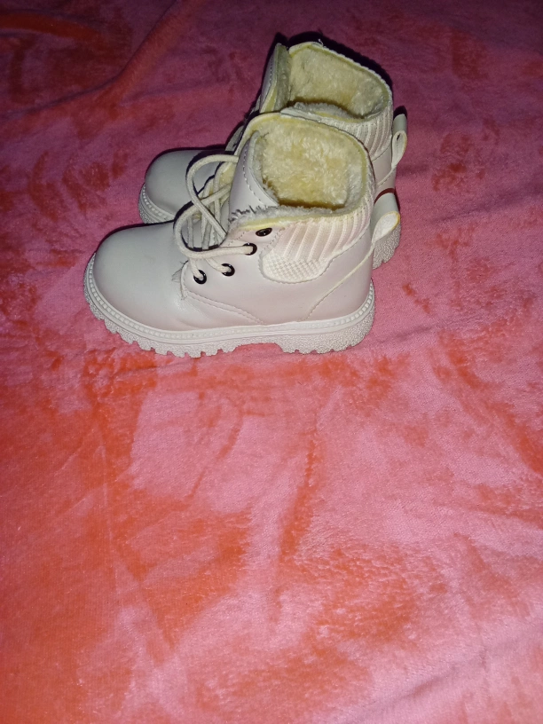 Here are some cute cream winter boots! They have a soft, warm lining, perfect for keeping your little one's feet cozy during the colder months