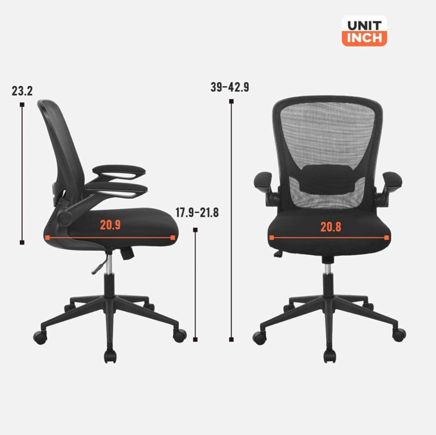 ❤Chair with Flip UP Arms - The cushion of office chair, armrest accord with human body engineering design, let your body and mesh chair perfect fit, suit long time use.
