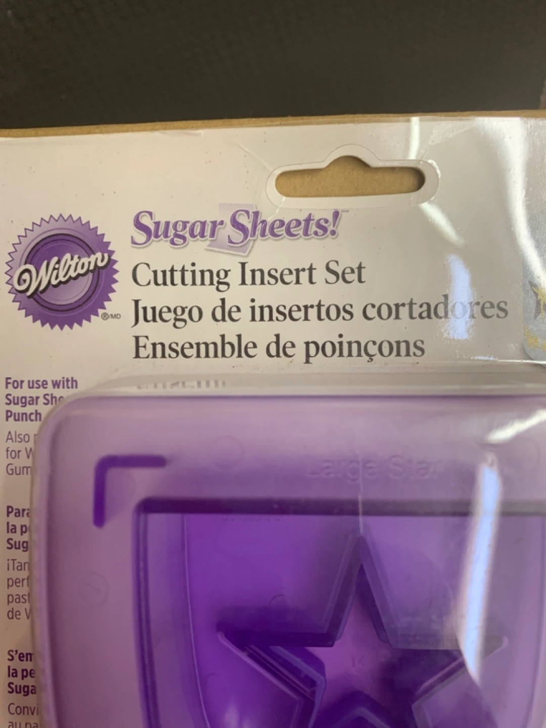 I'm selling a Wilton Sugar Sheets Cutting Insert Set, perfect for adding some star power to your baked goods! This set includes large, medium, and small star inserts, all in a lovely purple colour. It's ideal for use with sugar sheets, fondant, and gum paste. Get ready to create some stellar designs!