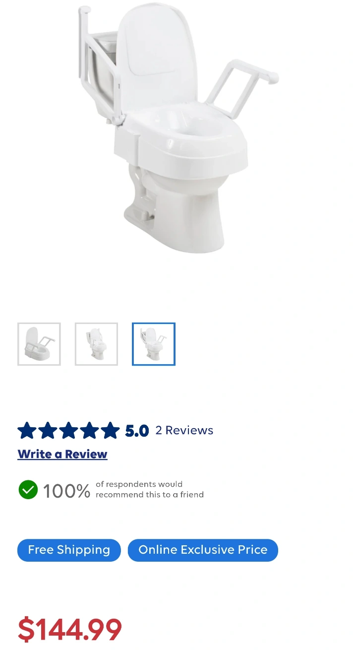 "Universal Raised Toilet Seat, our first ever truly universal raised toilet seat accommodates three different seat heights (2", 4" and 6") by maneuvering just two components. This seat can fit on most standard and elongated toilets."