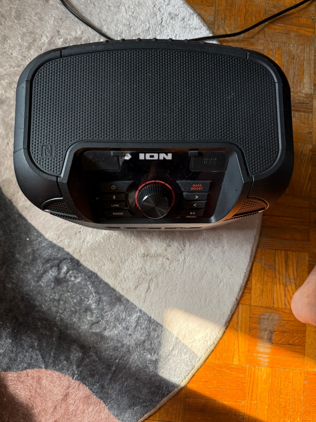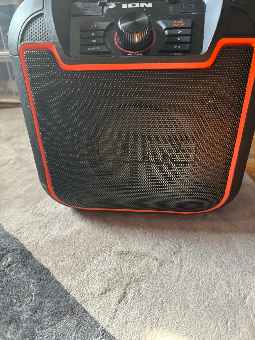 Selling an ION Audio portable Bluetooth speaker. It's in good condition and perfect for parties or outdoor gatherings. It comes with a power cable
