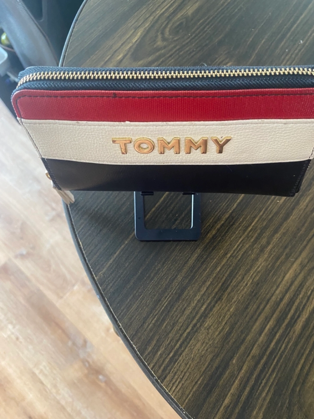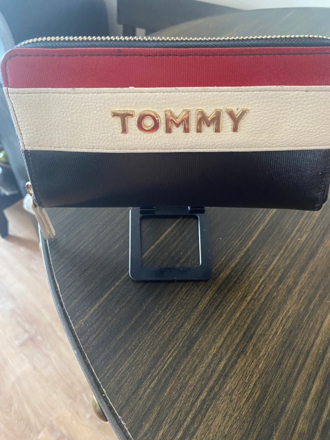 Tommy Hilfiger wallet in red, white, and black. It's in great condition and ready for a new home!