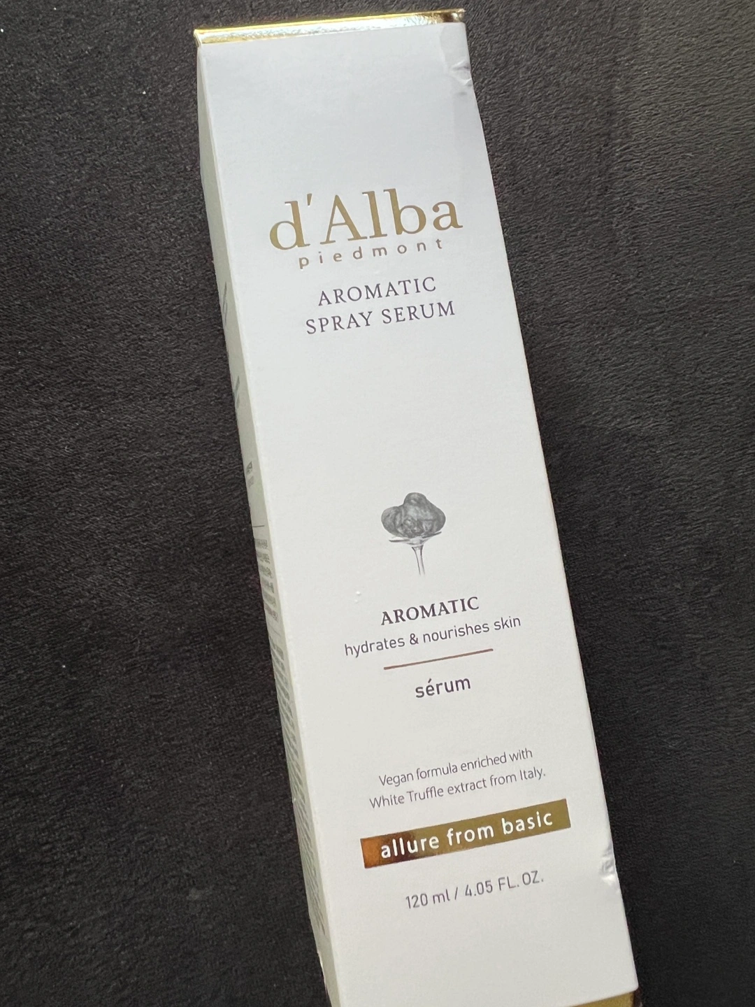 New in Box d'Alba Piedmont Aromatic Spray Serum! It hydrates and nourishes the skin with a vegan formula enriched with white truffle from Italy. The bottle contains 120ml / 4.05 FL. OZ.