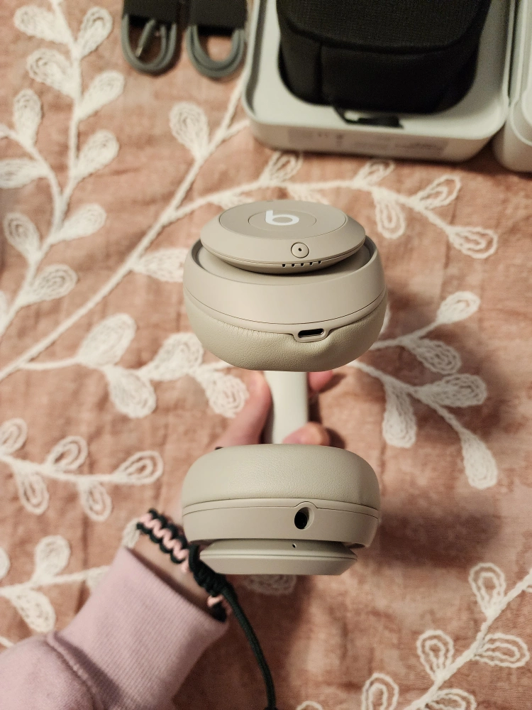 This is the Beats by Dr. Dre Studio Pro over-the-ear bluetooth headset with active noise cancellation in the colour "Sandstone." I have done a factory reset so it is ready to pair for the new owner.