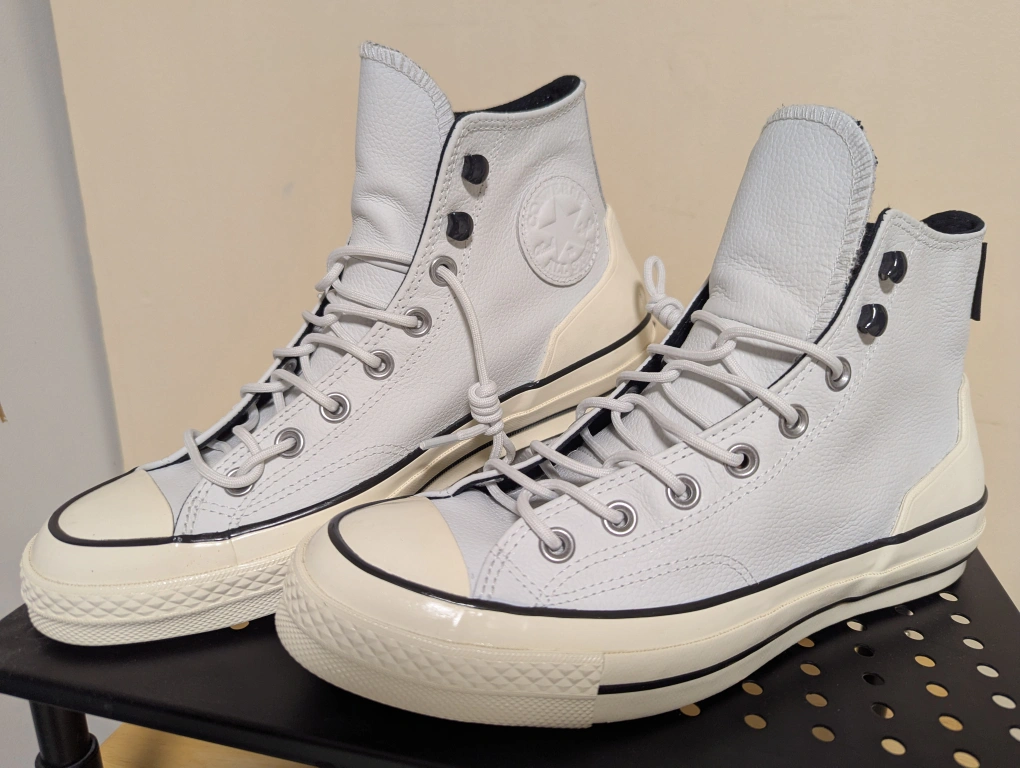 Selling a pair of Converse Chuck 70 Utility All Terrain High Top sneakers in white. They are in great condition and feature a water-repellent design. Perfect for everyday wear!