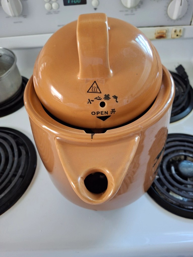 I'm selling a vintage electric herbal tea maker! It's in great condition and ready to brew your favourite herbal teas. It features a unique design with traditional motifs. It's perfect for anyone who enjoys a soothing cup of tea!