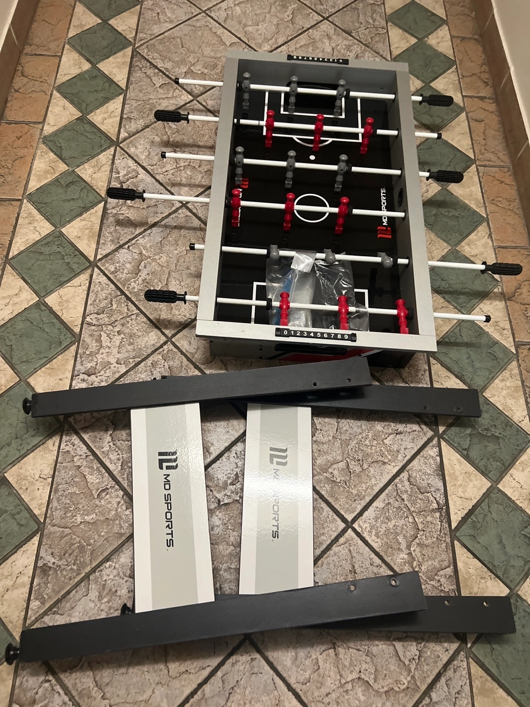 Selling a MD Sports FLOOR MODEL foosball table. It's in great condition and ready for some fun! All the pieces are included, LEGS ALL HARDWARE. AND EXTRA BALLS. Take this and the pool table I’m selling for $ 90 Total. Come and get it. Perfect for summer time fun.