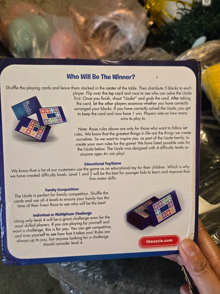 Selling The Uzzle board game! This is perfect for family competition. Shuffle the cards and use all 4 levels to ensure your family has the time of their lives! Race to see who will be the best!