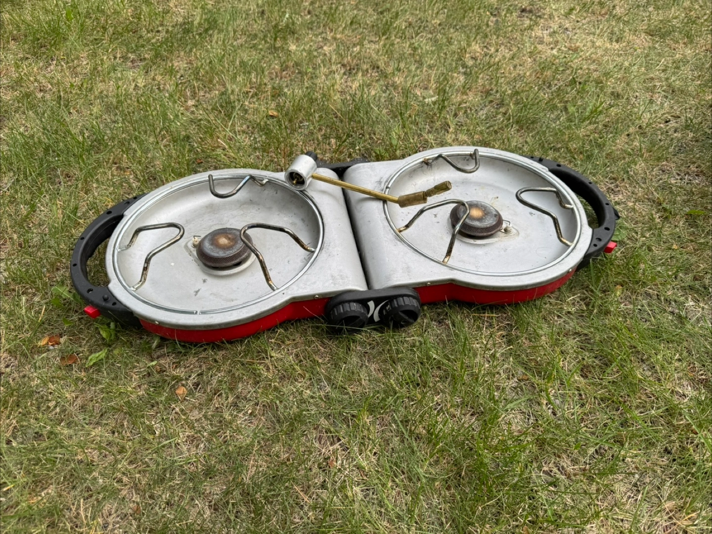 Selling a Coleman Fold N Go 2-burner propane stove! It's in good condition and ready for your next camping trip or outdoor cooking adventure. Compact and easy to transport, this stove is perfect for cooking on the go!