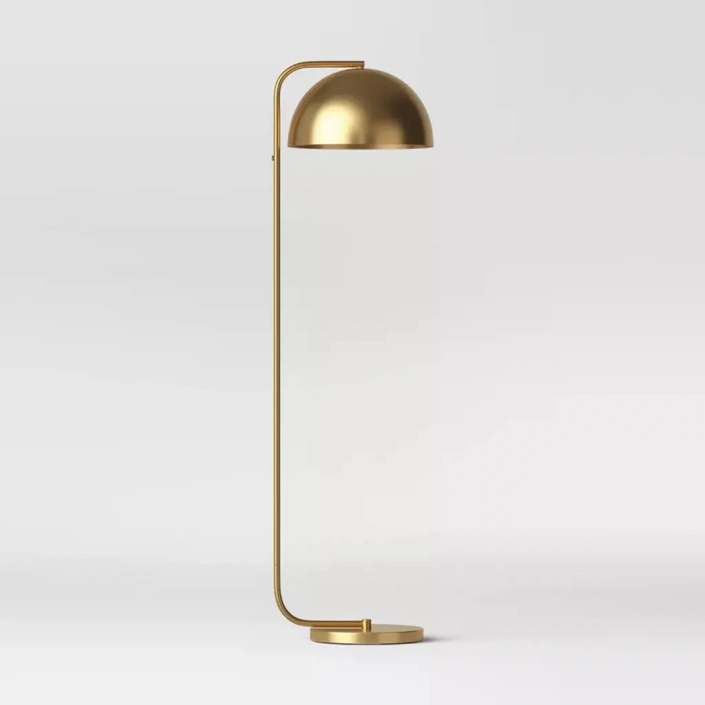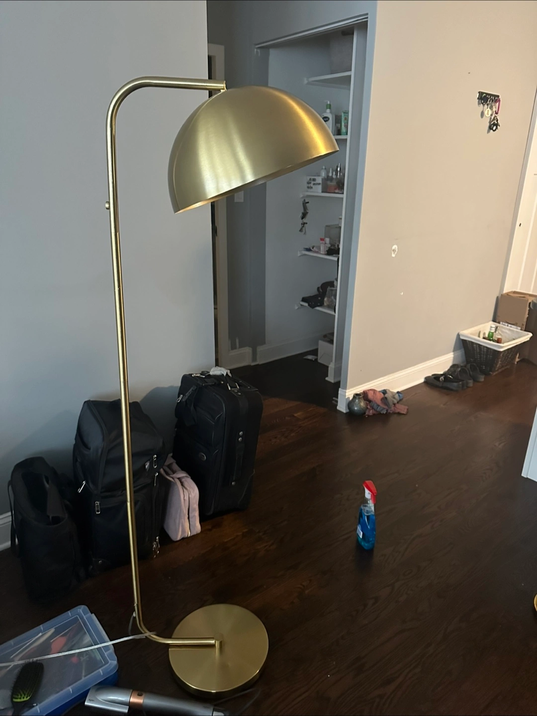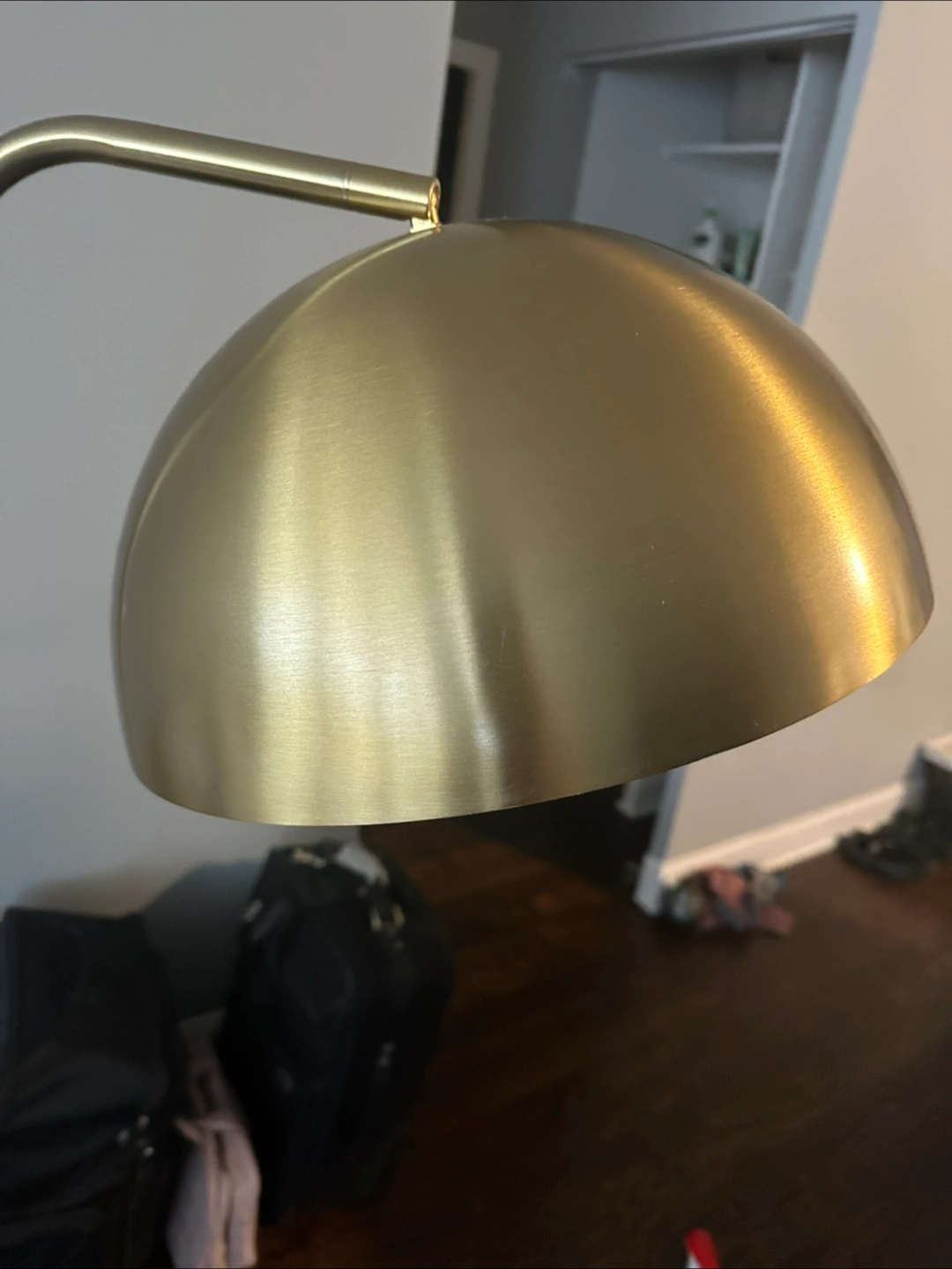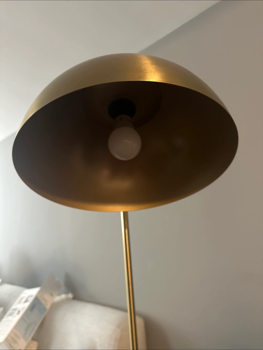 Selling a gold dome floor lamp! It's a stylish piece that adds a touch of elegance to any room. It has a sleek design and provides a warm, ambient light. Perfect for creating a cozy atmosphere in your living space