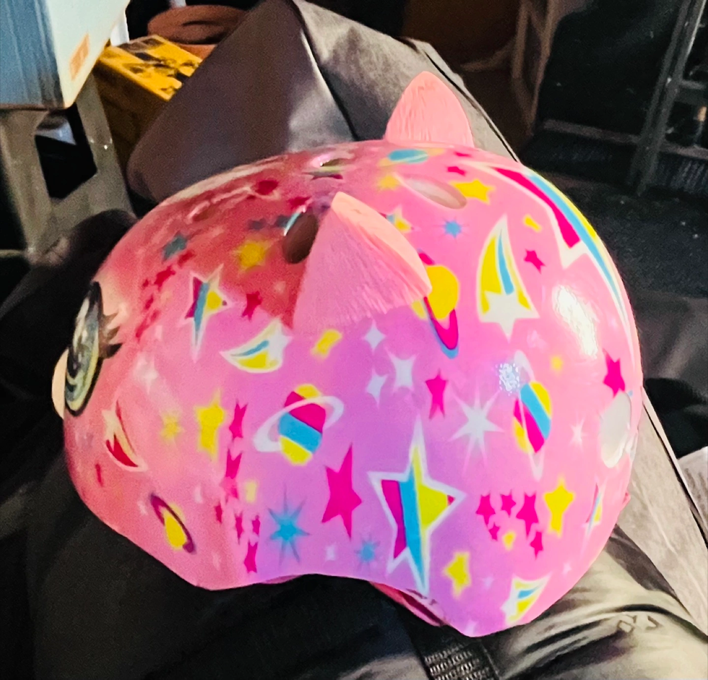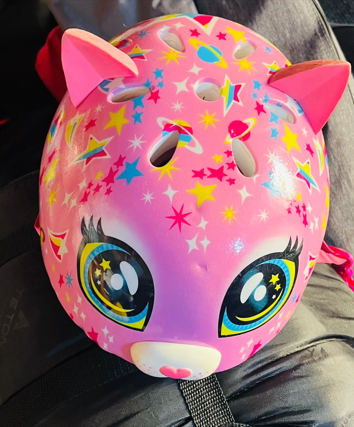 This helmet is in great shape as it wasn’t used for a short period of time with my daughter growing out of it. Size is youth small.