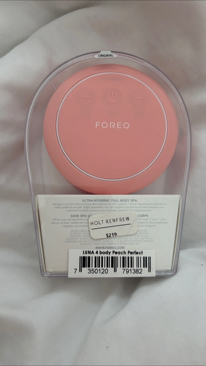 Selling a brand new FOREO LUNA 4 body in Peach Perfect! It's still in its original packaging. This T-Sonic massaging face and body brush is designed for daily deep cleansing. Originally bought for $219 from Holt Renfrew as a gift