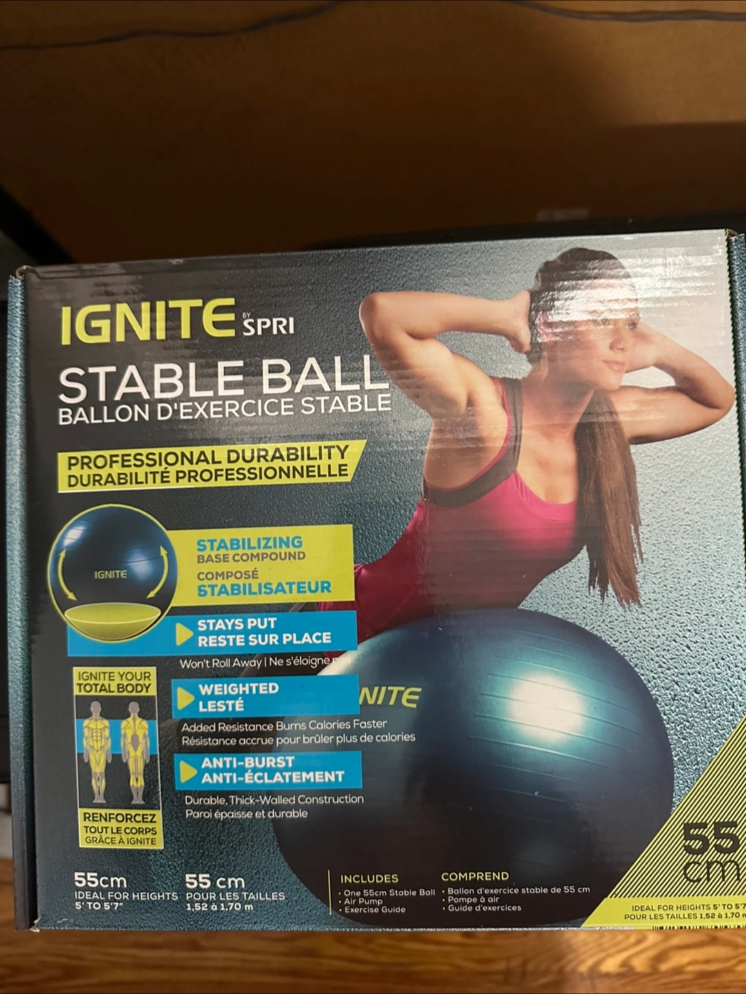 Selling an Ignite by Spri stable ball, size 55cm! It’s designed for professional durability and is anti-burst. It includes an air pump and exercise guide, all in the original box! Weighted cordless jump rope included. Smoke free home