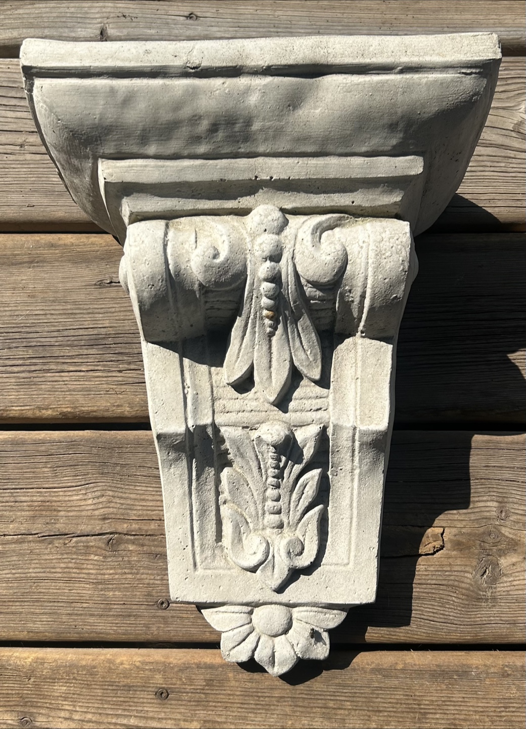 I have for sale this very pretty (and never used) cast concrete garden planter sconce. We’d purchased it in early spring from a garden centre for $120 but don’t really have a place for it. It’s a super nice piece that will only get better with a little age and weather patina.