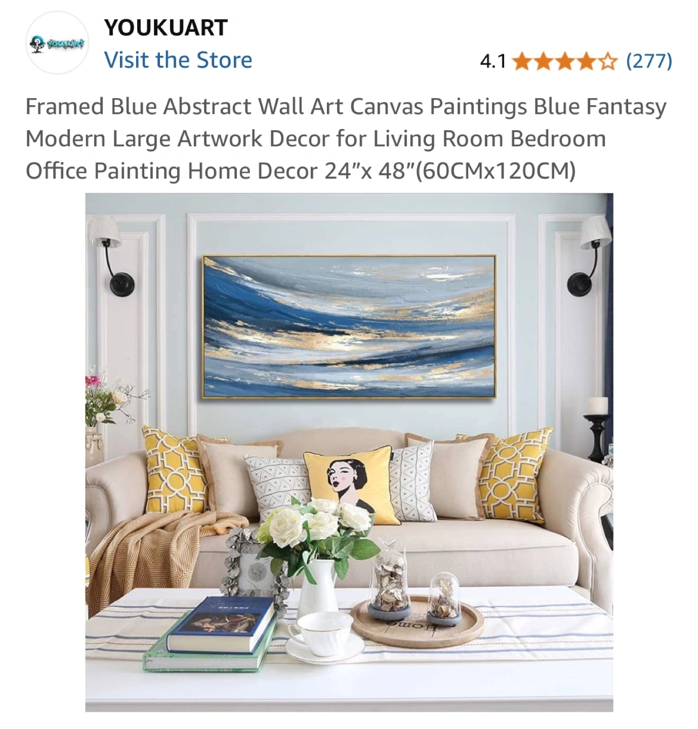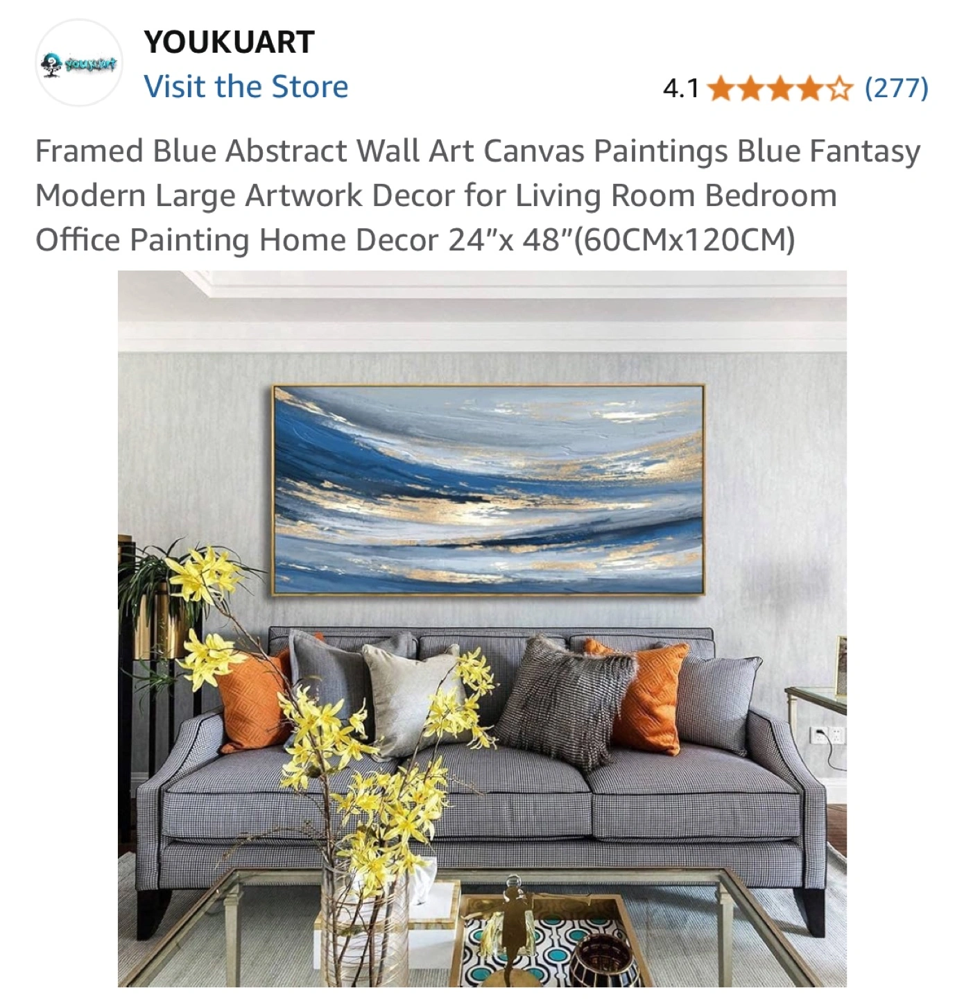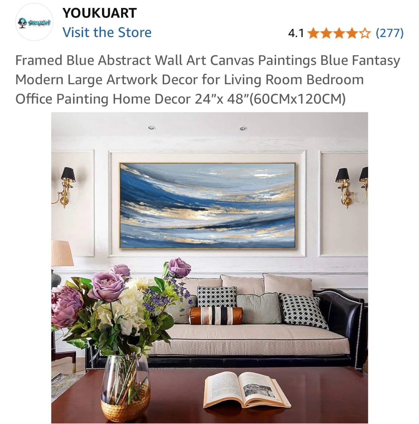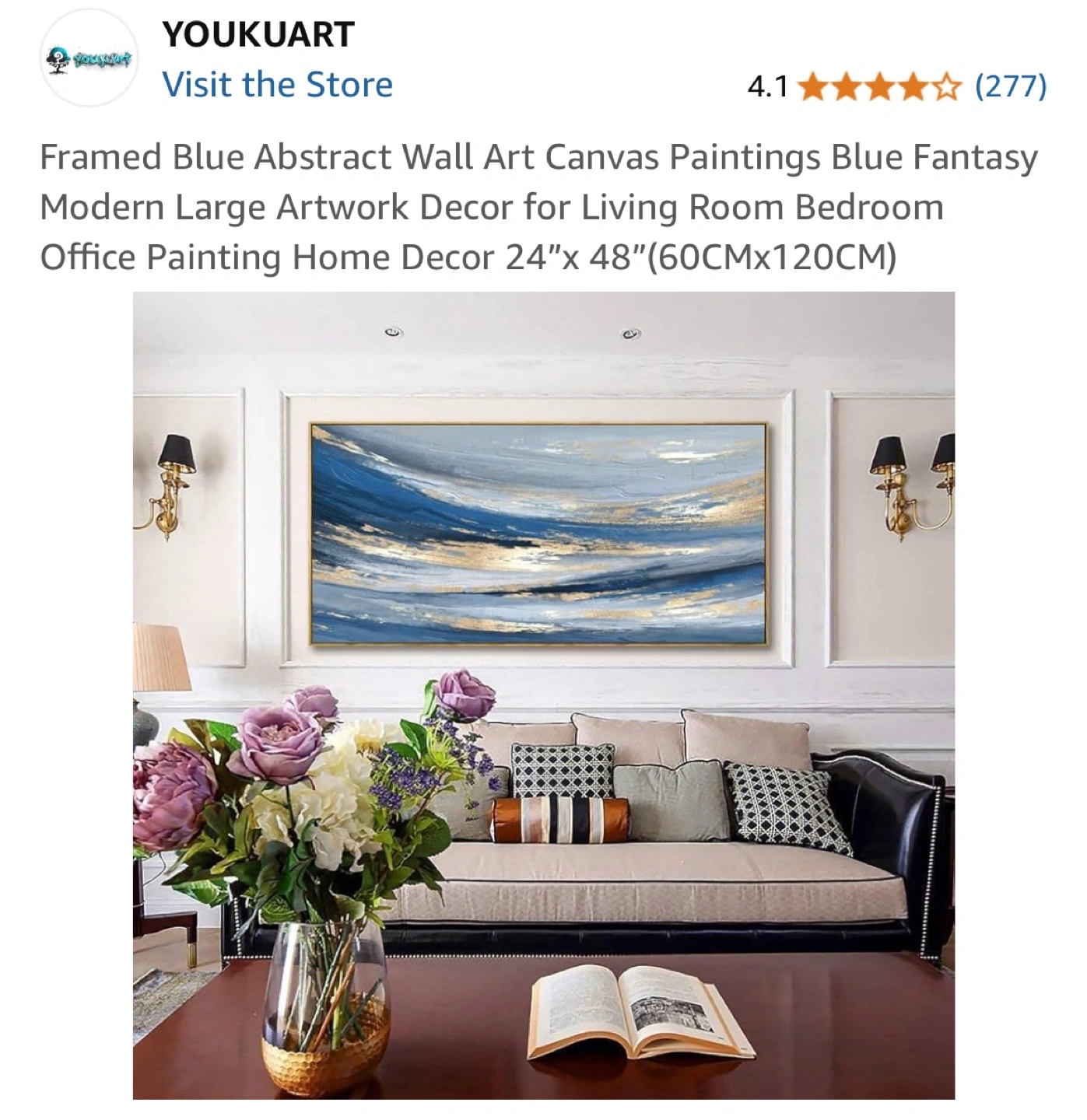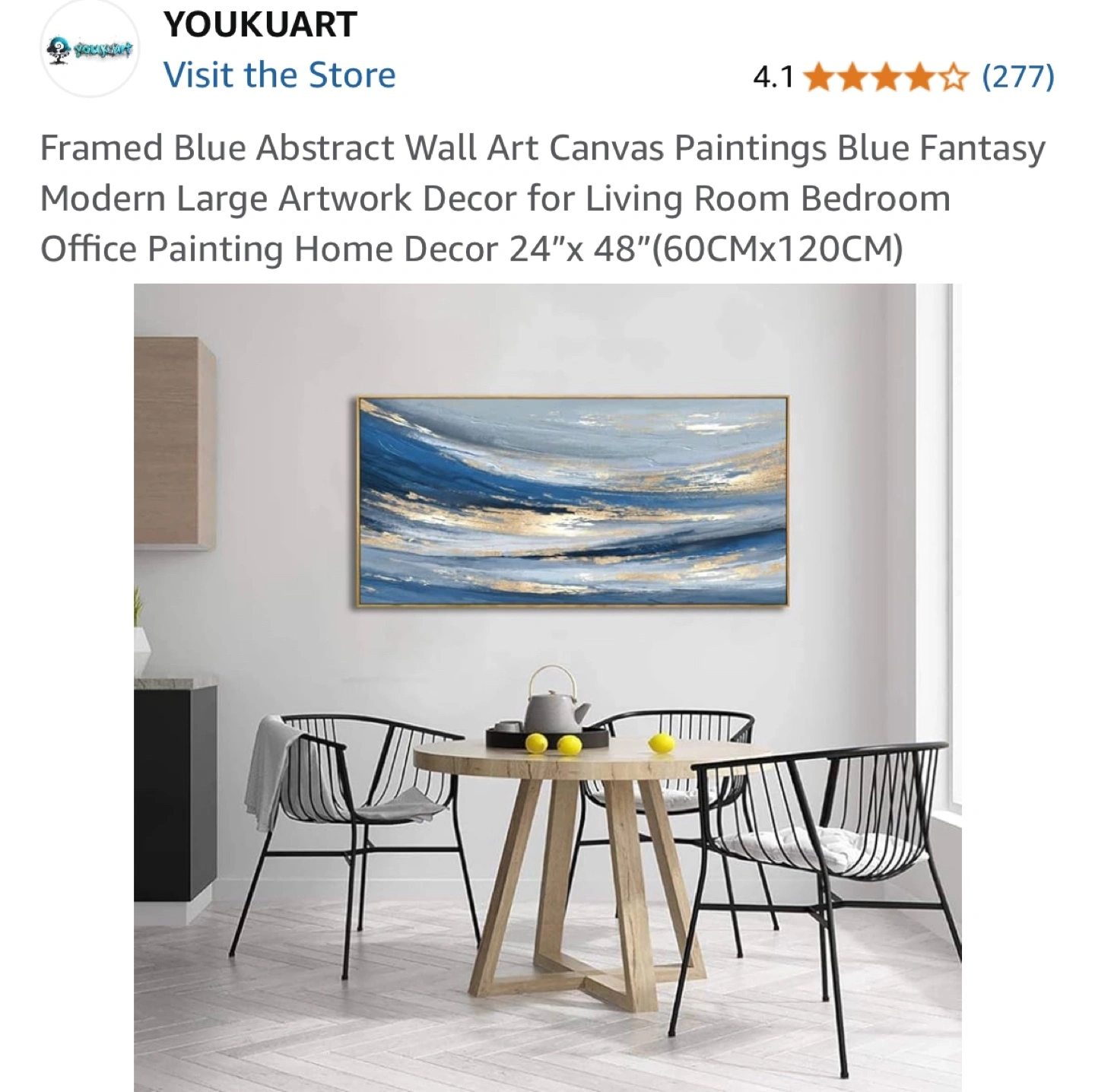 YOUKUART Framed Blue Abstract Wall Art 24"x48"