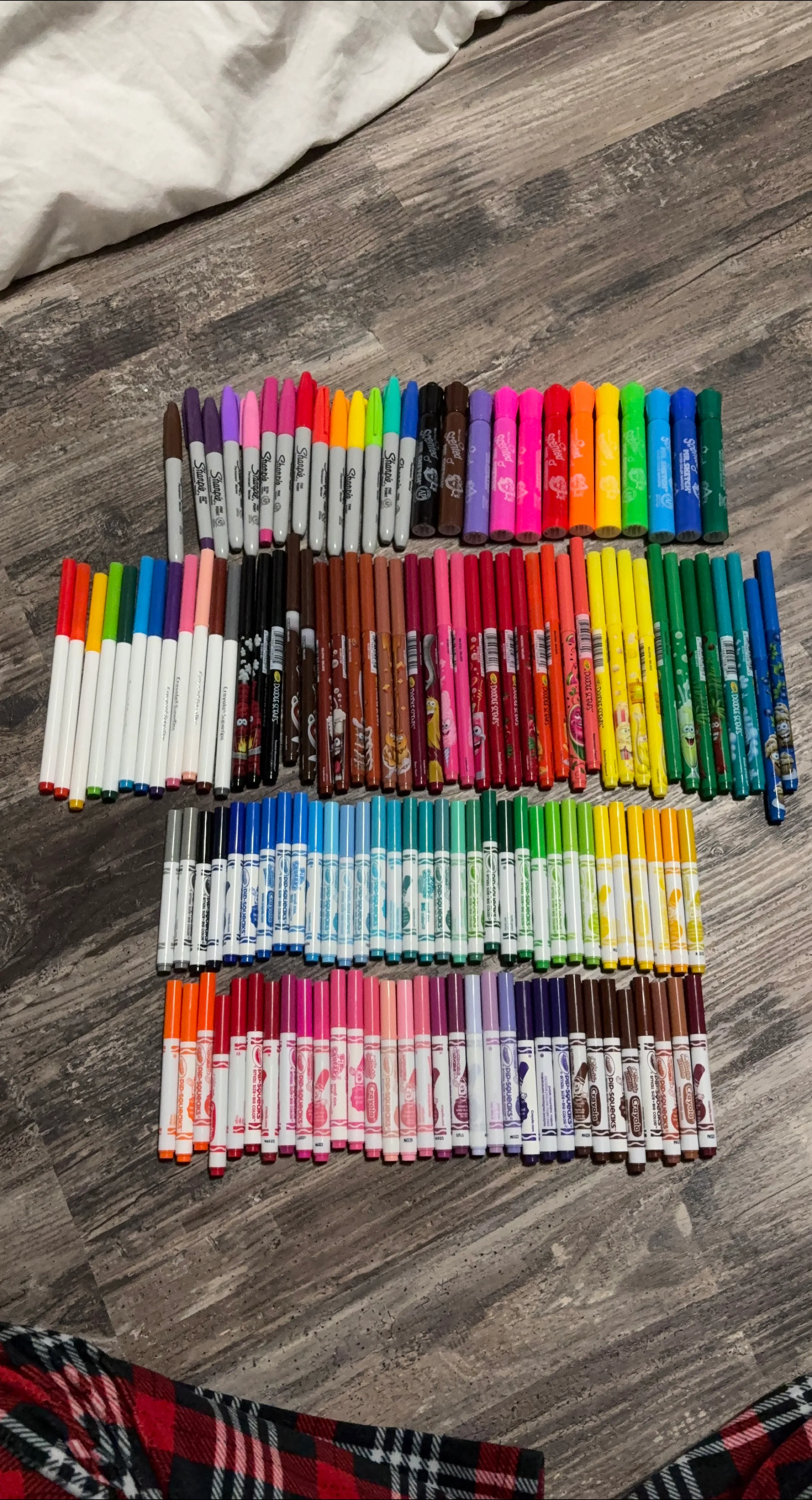 Selling a large bundle of markers! Includes various brands like Sharpie, Mr. Sketch, doodle scents and Crayola. Great for art projects or just having fun with colours. All markers are brand new and have only been tested! Quantity’s of each brand are below: