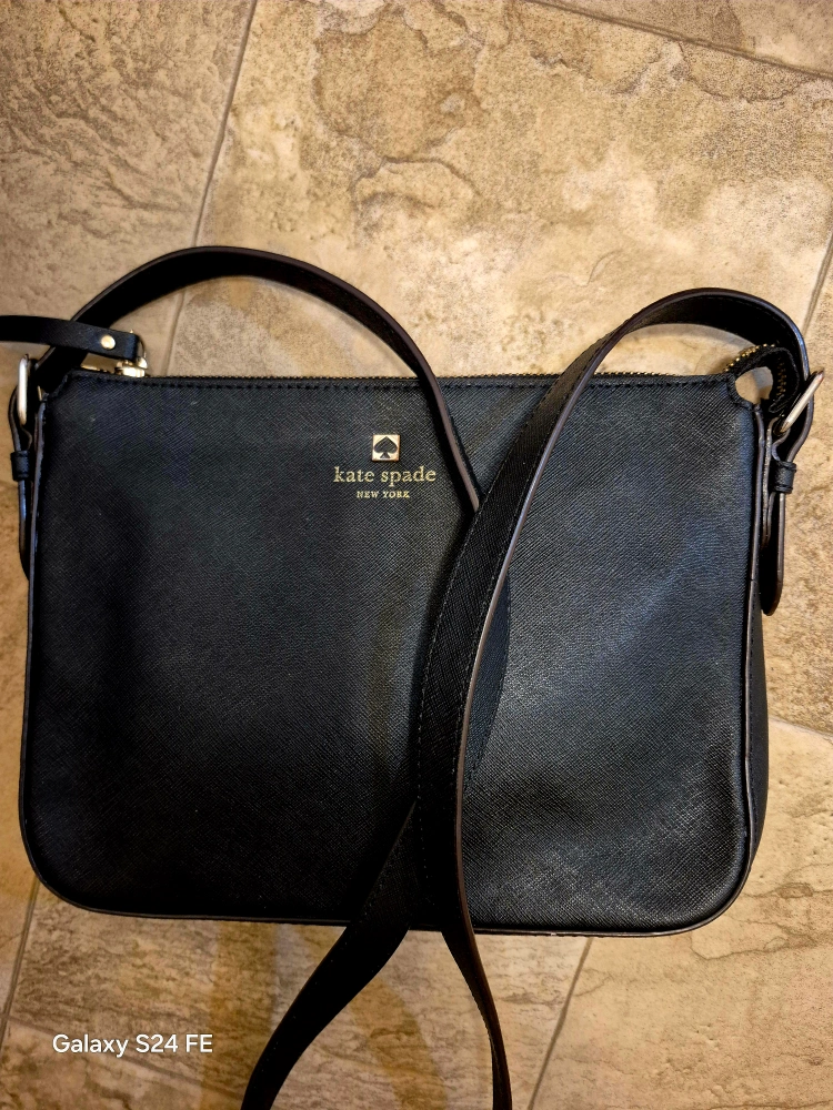 Selling a Kate Spade New York crossbody bag in black! It's in great condition and perfect for everyday use. The bag features a sleek design with the Kate Spade logo. It is made of high-quality materials and has an adjustable strap, no flaws, signs of wear , mint condition