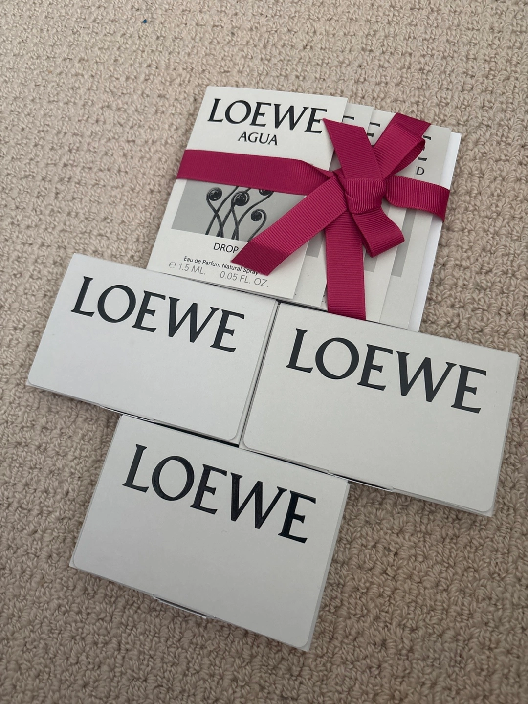 Three sets of Loewe 001 perfume samples for both men and women + 5 Edp spay. They come in their original packaging and are perfect for trying out the scents before committing to a full bottle. The scents include notes of: