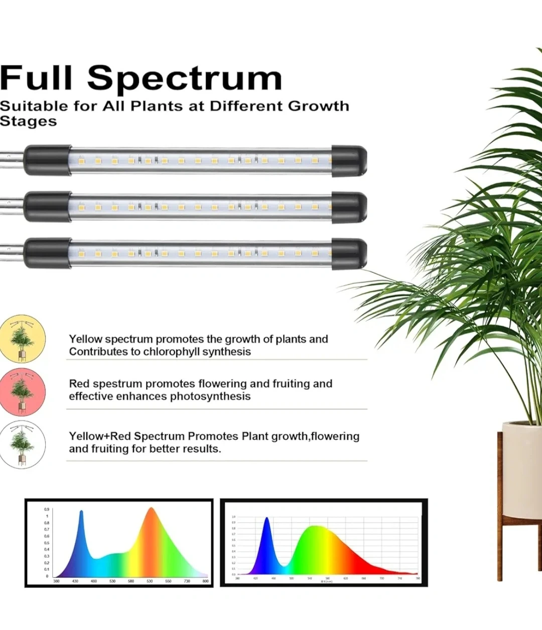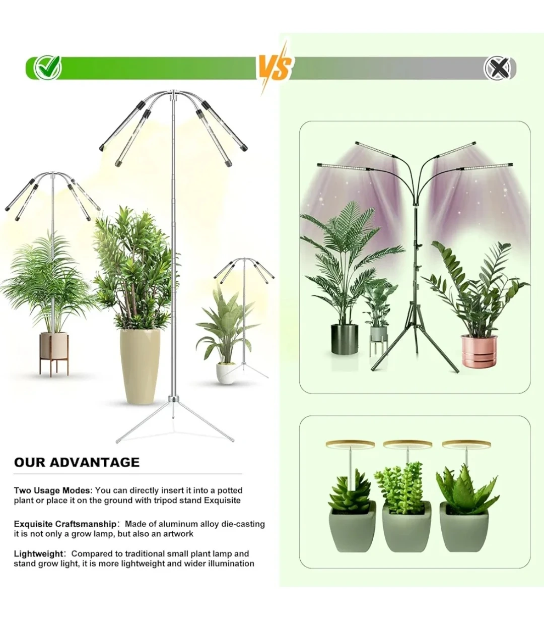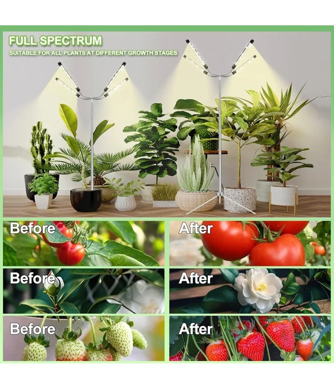 This full spectrum LED grow light stand is suitable for all plants at different growth stages. It features adjustable arms for optimal light placement. Perfect for indoor plant enthusiasts looking to supplement natural light!