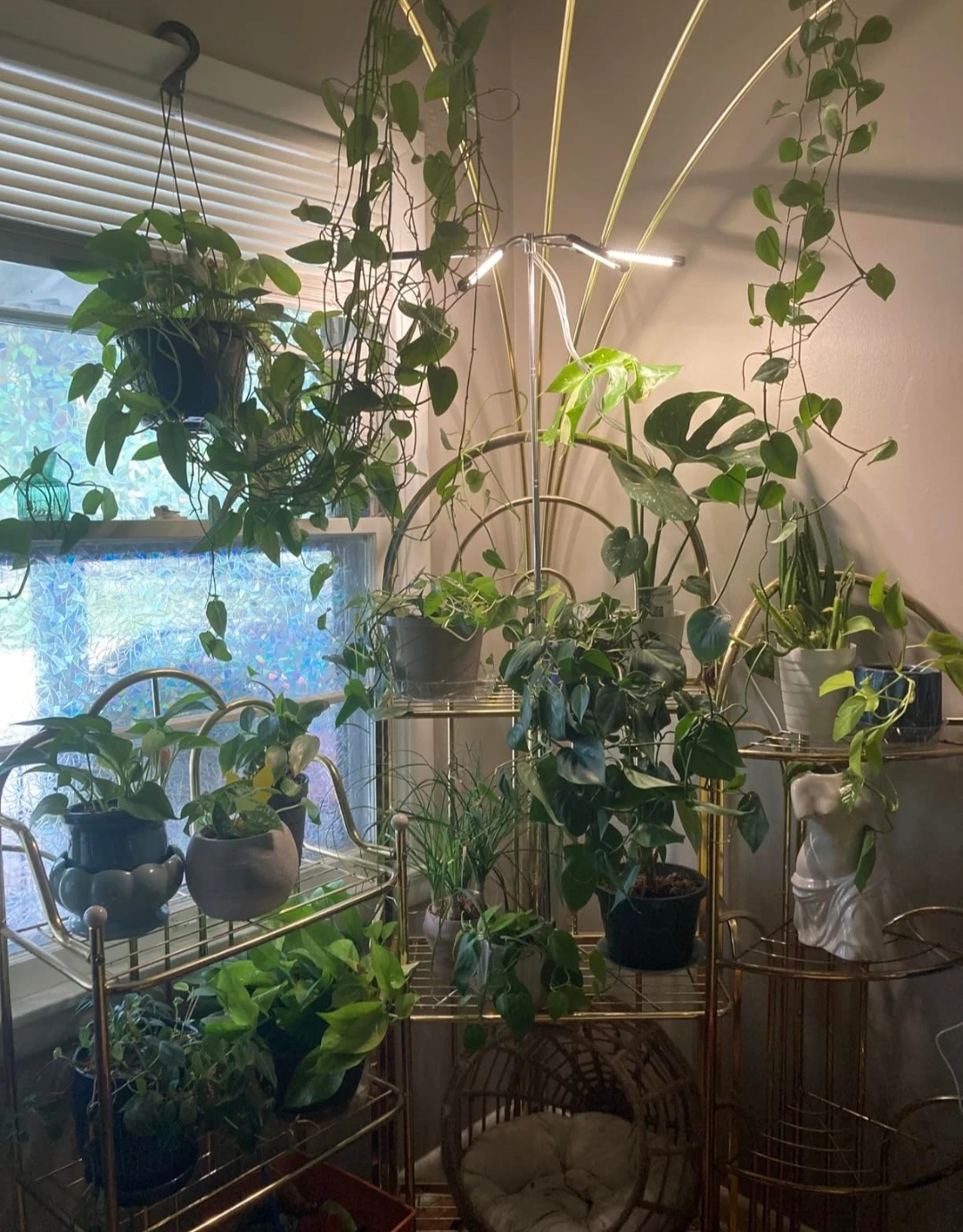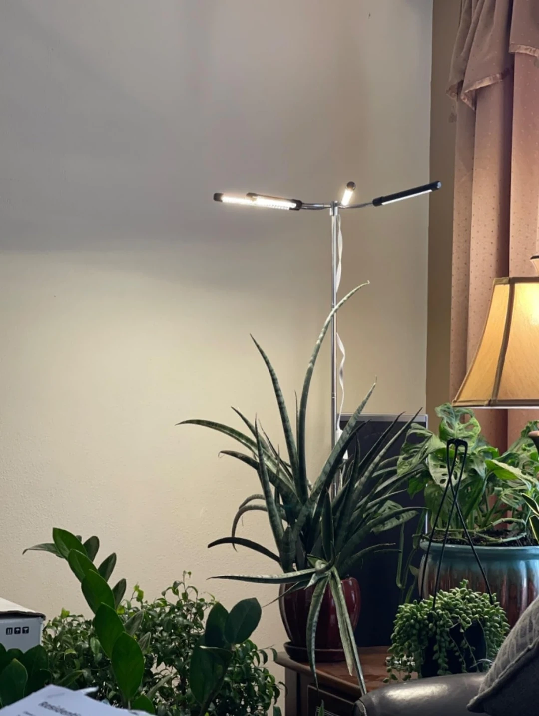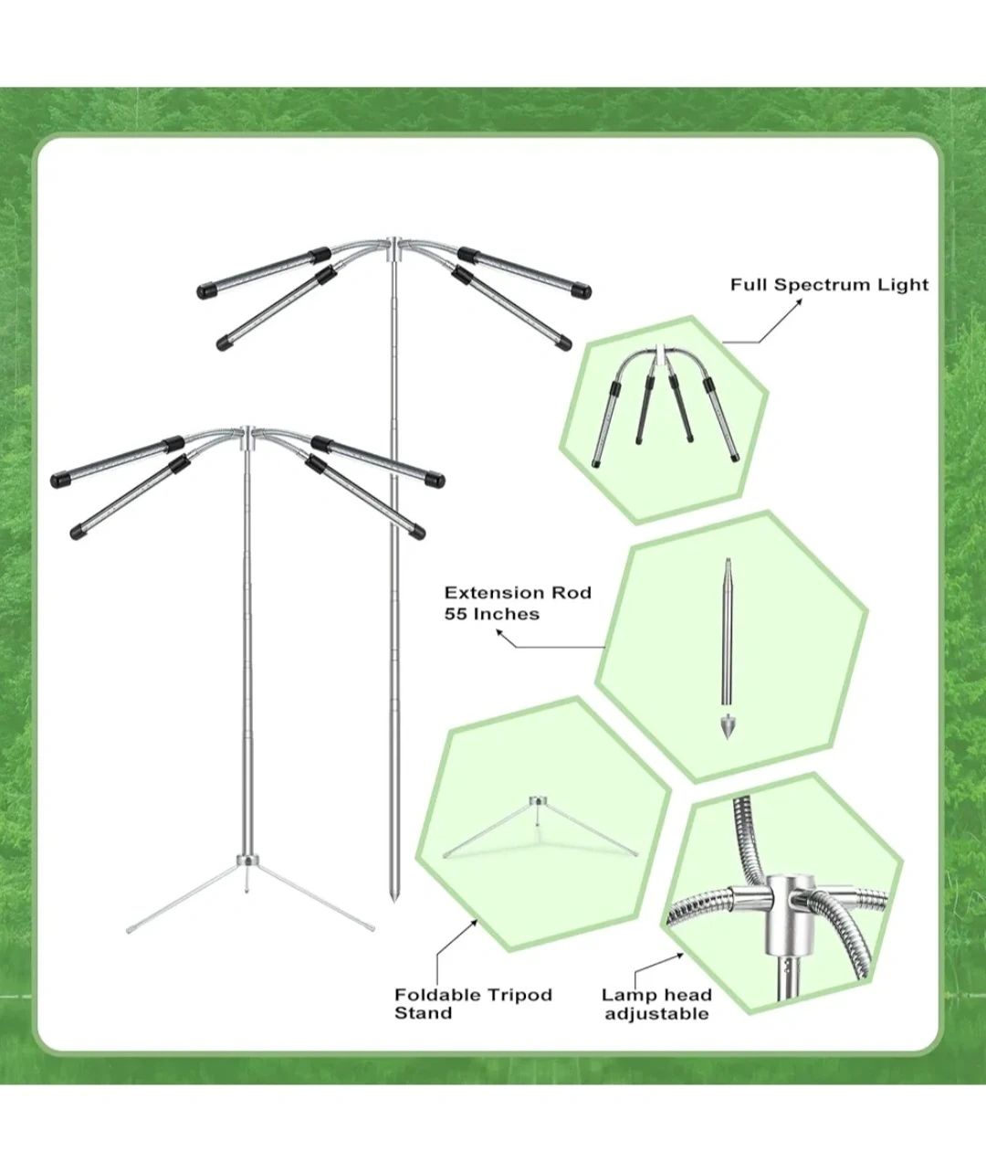 This full spectrum LED grow light stand is suitable for all plants at different growth stages. It features adjustable arms for optimal light placement. Perfect for indoor plant enthusiasts looking to supplement natural light!