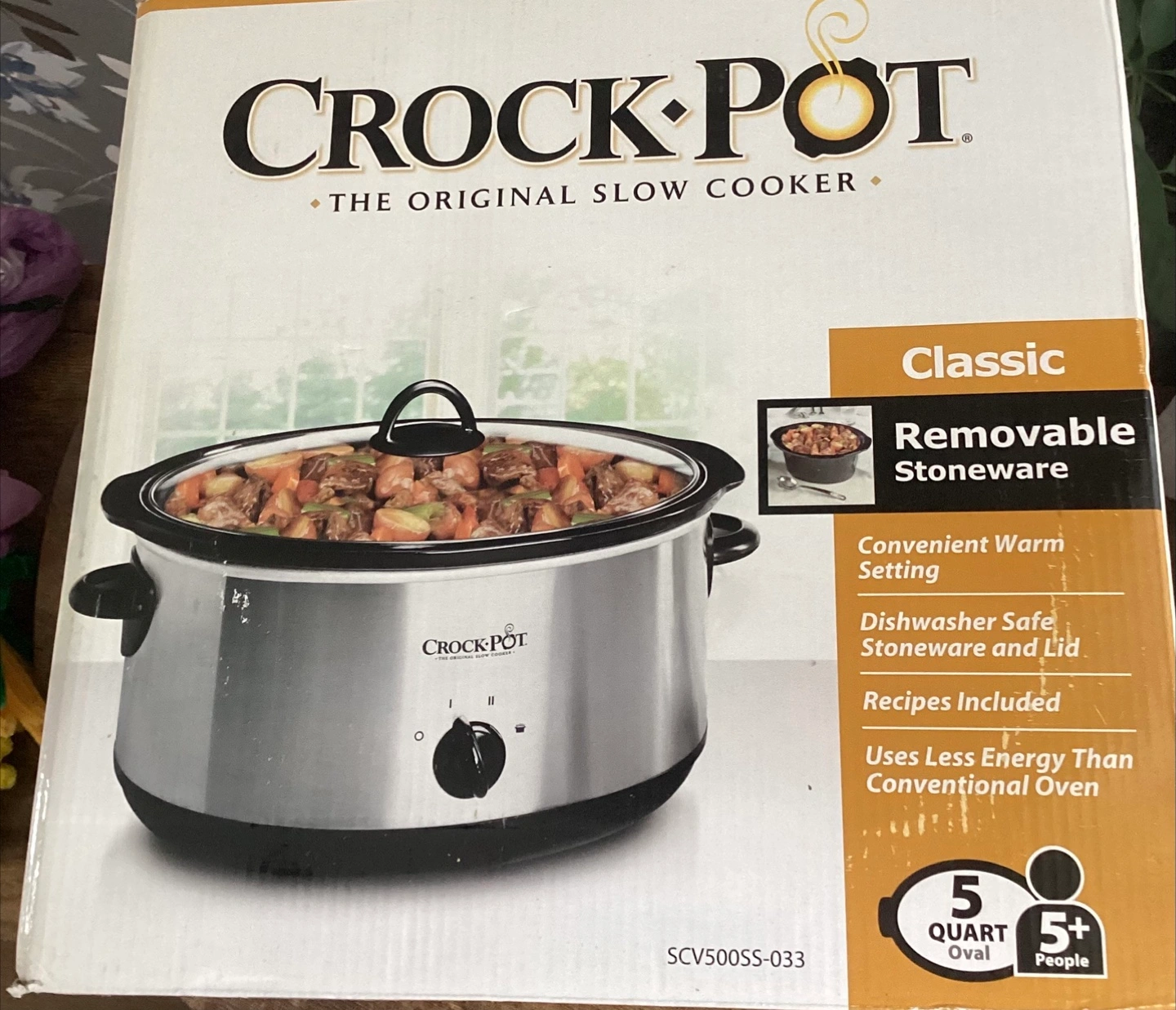 I'm selling a brand new Crock-Pot Classic slow cooker! It's a 5-quart oval model, perfect for feeding 5+ people. The stoneware is removable and dishwasher safe, making cleanup a breeze. It also has a convenient warm setting. Recipes are included to help you get started!