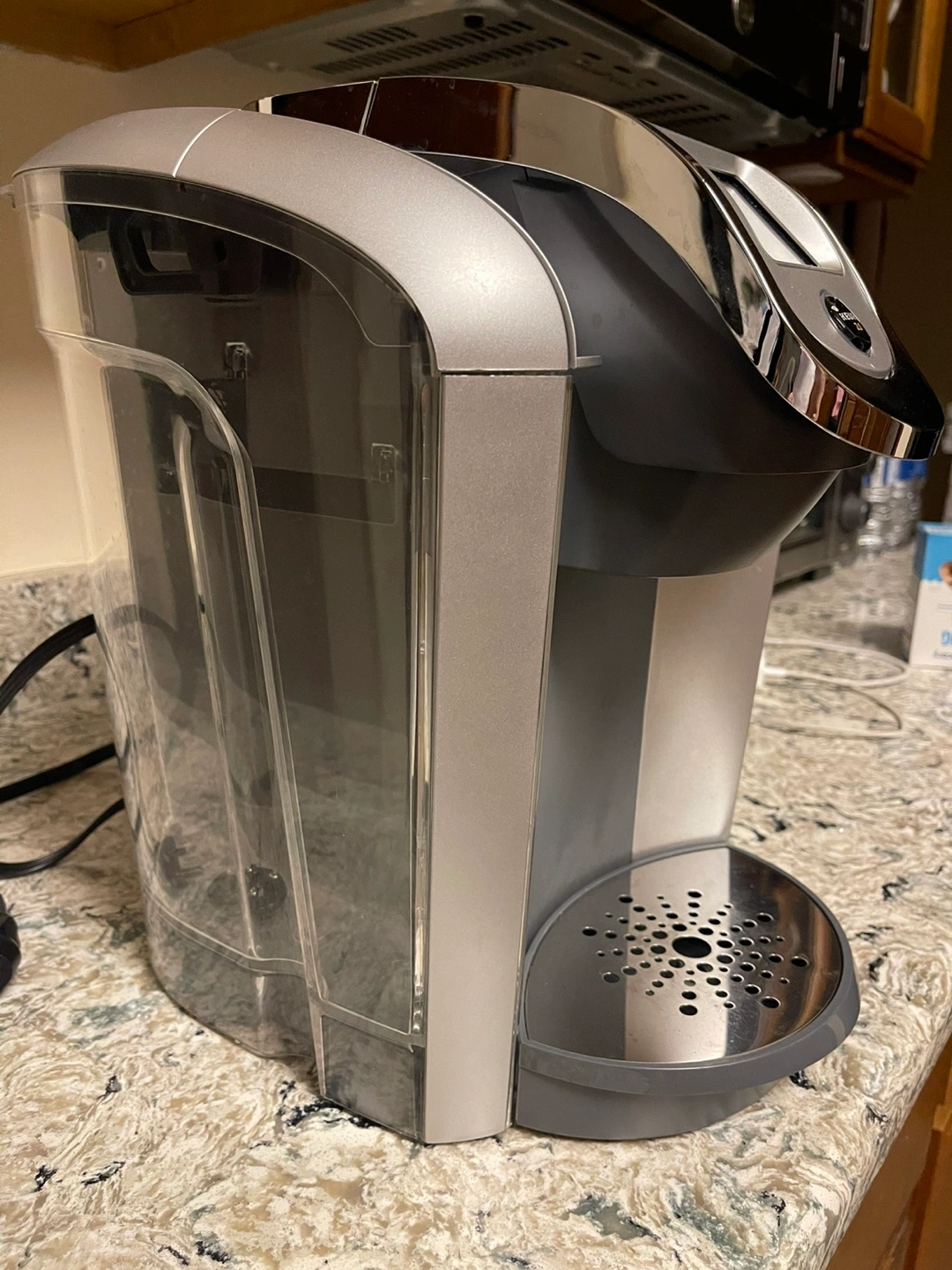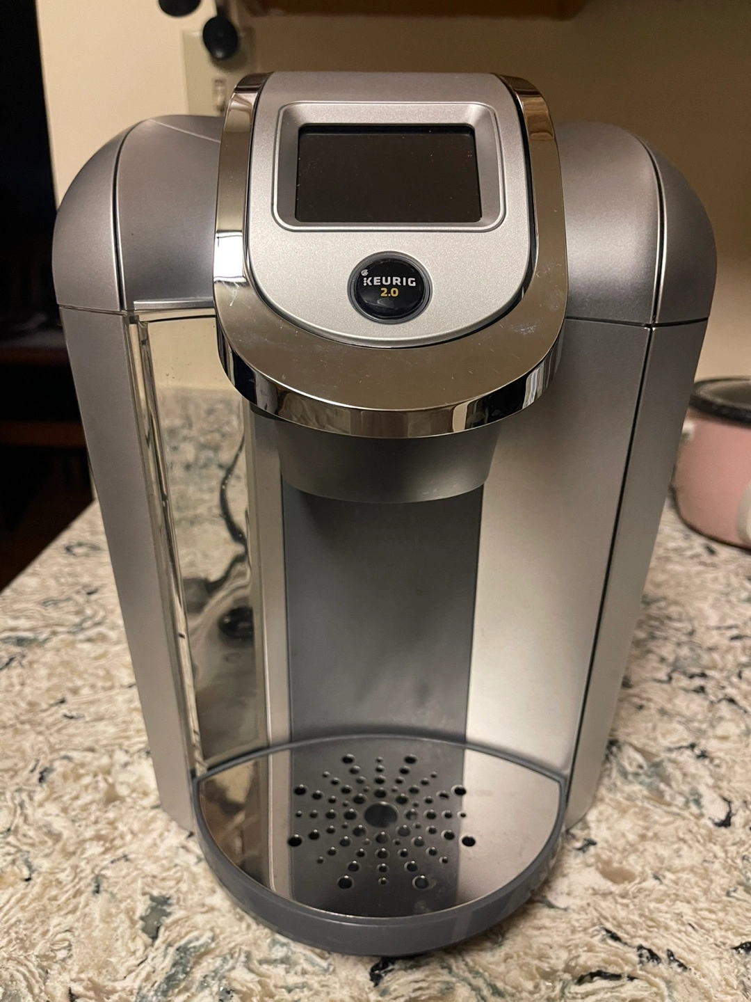 Selling a Keurig 2.0 K250 coffee maker in silver. It's in great condition and ready to brew your favorite coffee! Perfect for single-serve brewing and easy to use