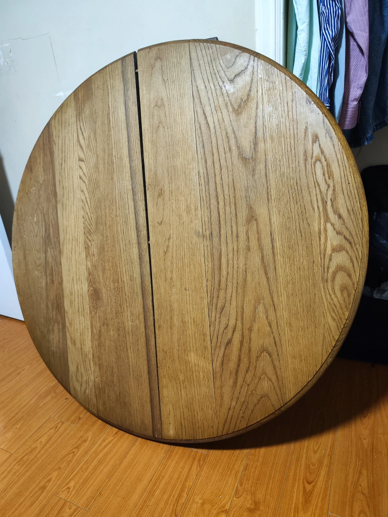 giving away a round wooden table. It comes with the legs as pictured. The table appears to be in good condition and ready for a new home!