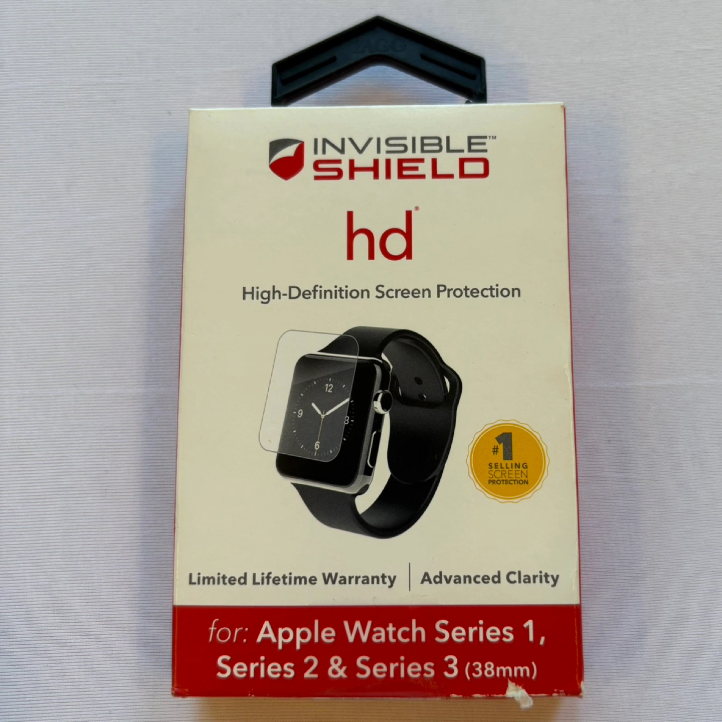 This is a Zagg Invisible Shield HD screen protector designed for Apple Watch 38 or 40 mm. It offers high-definition clarity and scratch protection. Keep your Apple Watch screen crystal clear with this durable screen protector. It's like giving your watch a superhero shield against everyday wear and tear.
