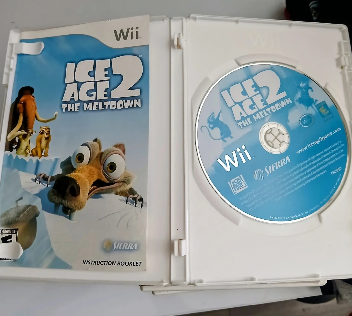 This is the Wii version of Ice Age 2: The Meltdown video game. It includes the game disc and instruction booklet. Published by Sierra.