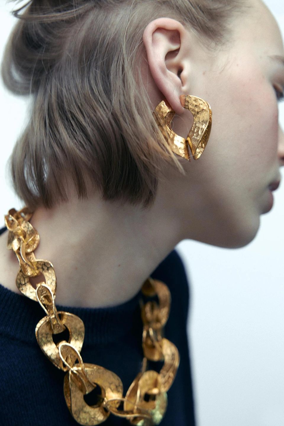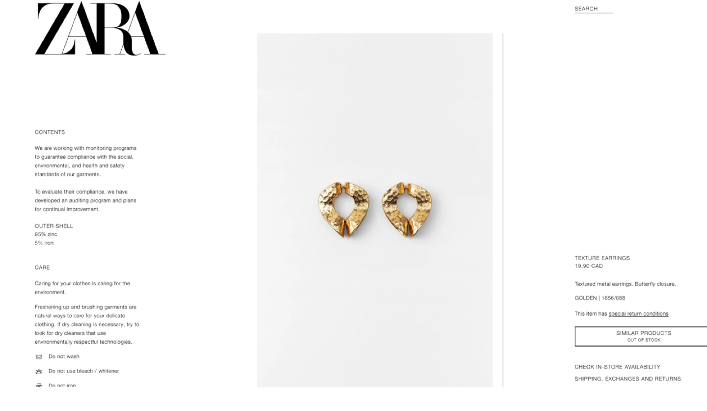 Beautiful pair of gold texture earrings from the Spring/Summer 2023 collection. They are currently sold out on the Zara website.