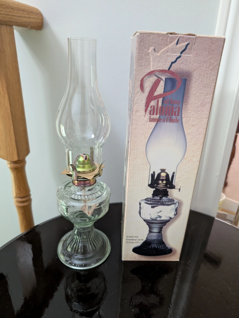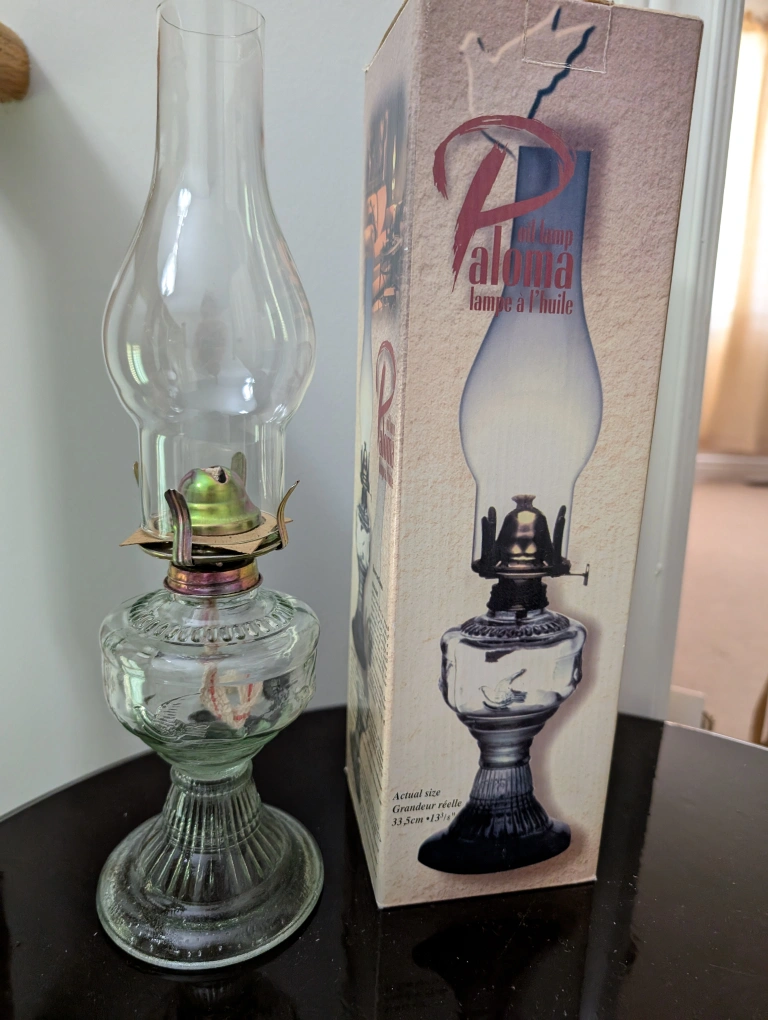 Selling a vintage Paloma oil lamp that is brand new - never used and comes with its original box! The box indicates the actual size is 11.5cm x 31.5cm