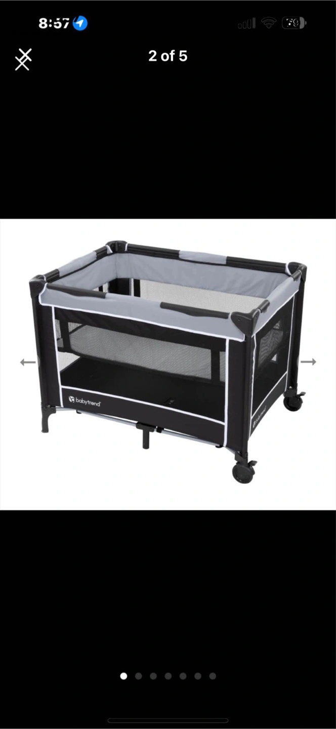 Selling a Baby Trend portable playard with bassinet in Twinkle Grey! The box is included.